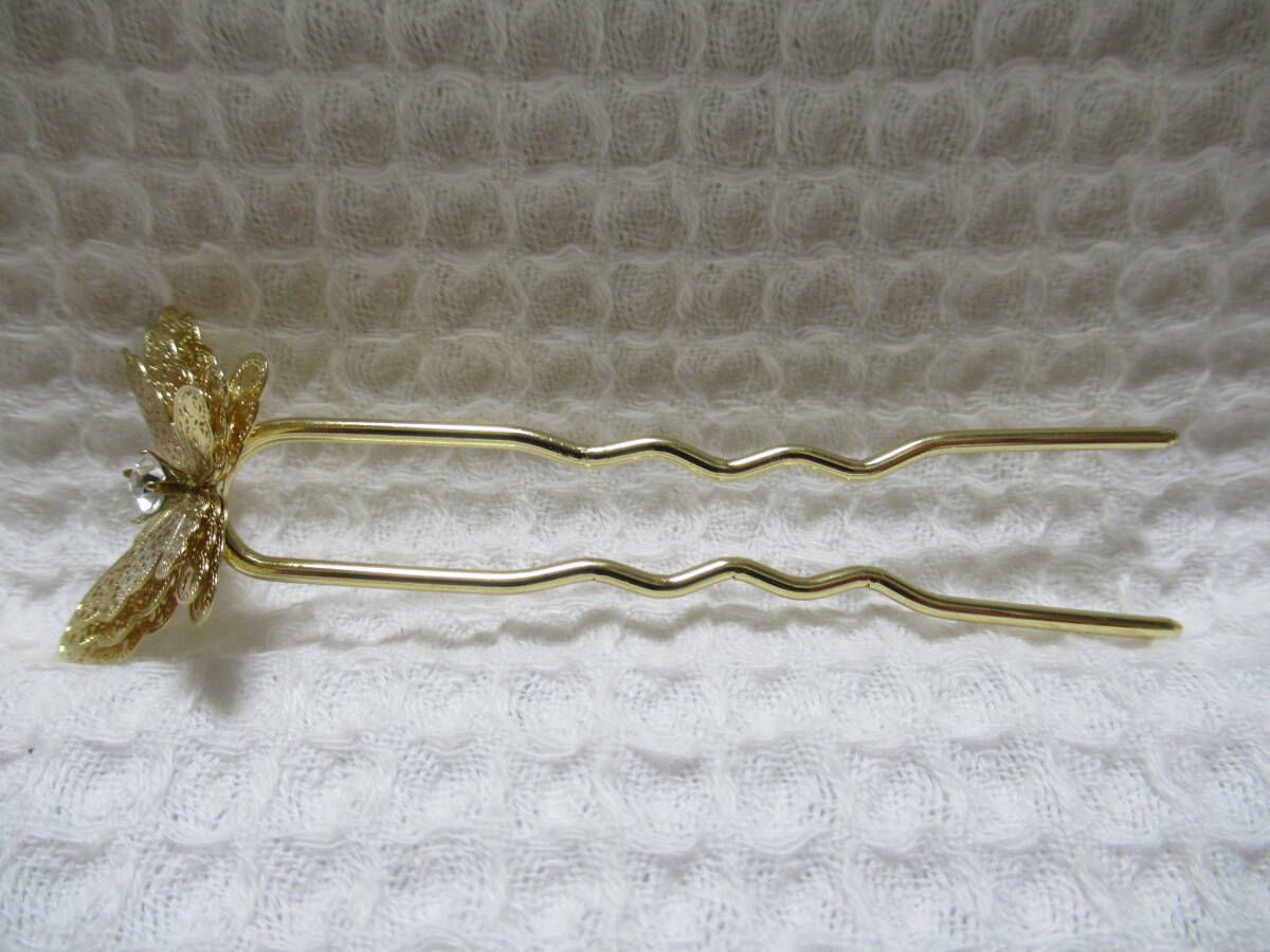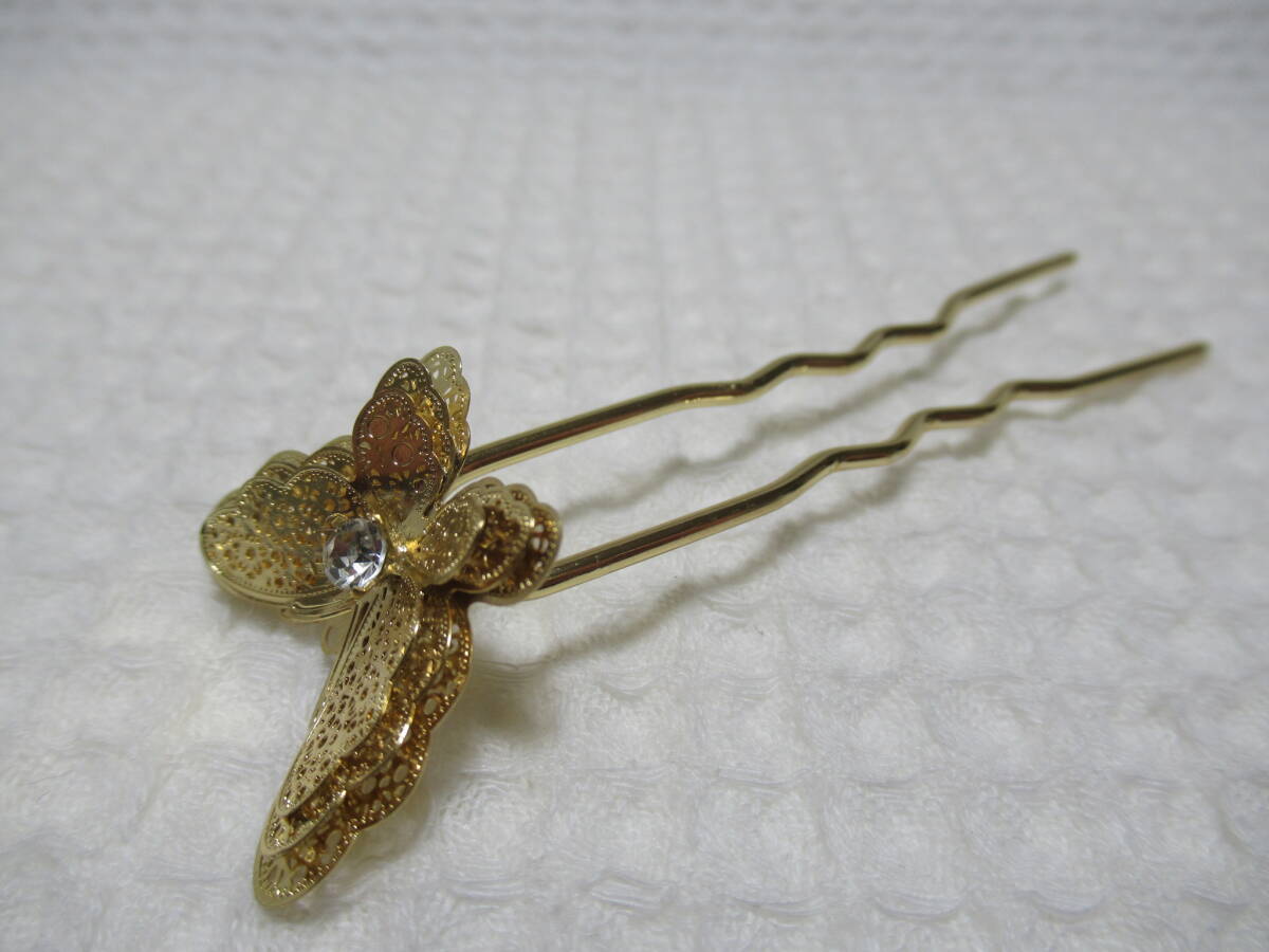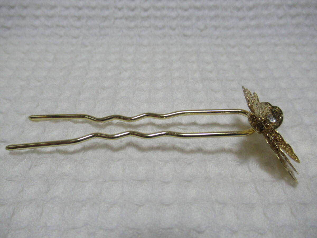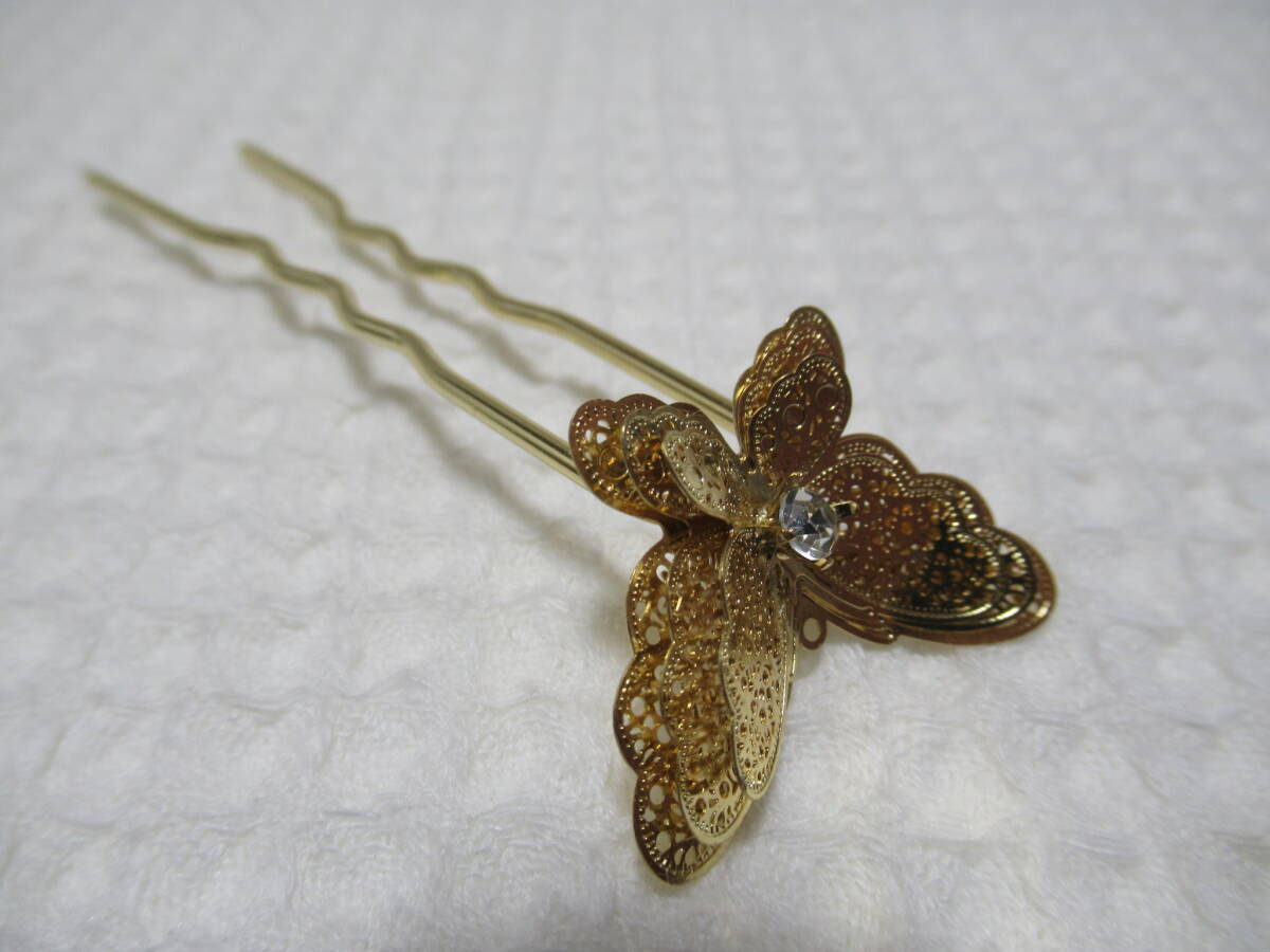 ラインストーン付きゴールド色メタル系の蝶型 ゴールド色メタル系小さいUコーム