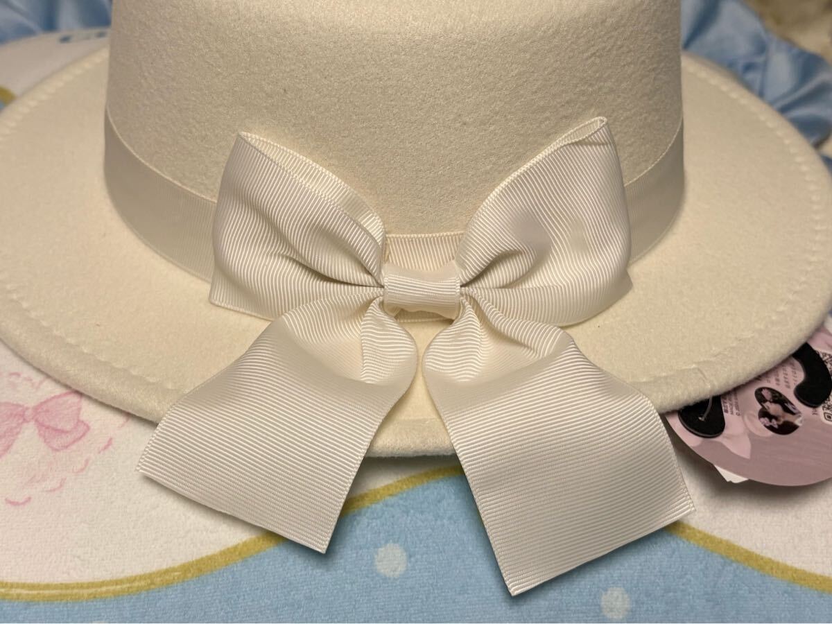 温かみのある秋冬素材では珍しい白い帽子です。