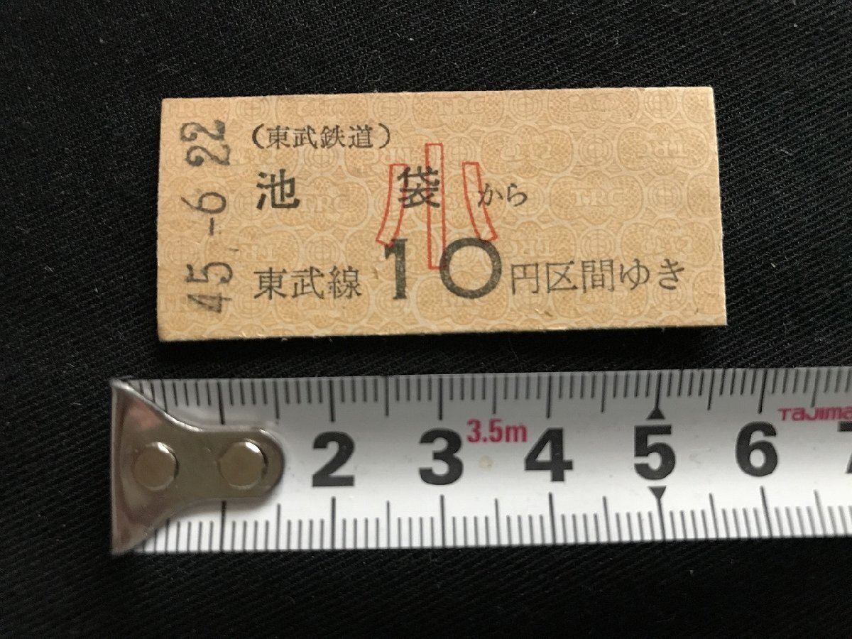 i☆* 古い切符 昭和45.6.22 東武鉄道 池袋から東武線10円区間 小 乗車券 硬券 入鋏なし券 1点 48/C05