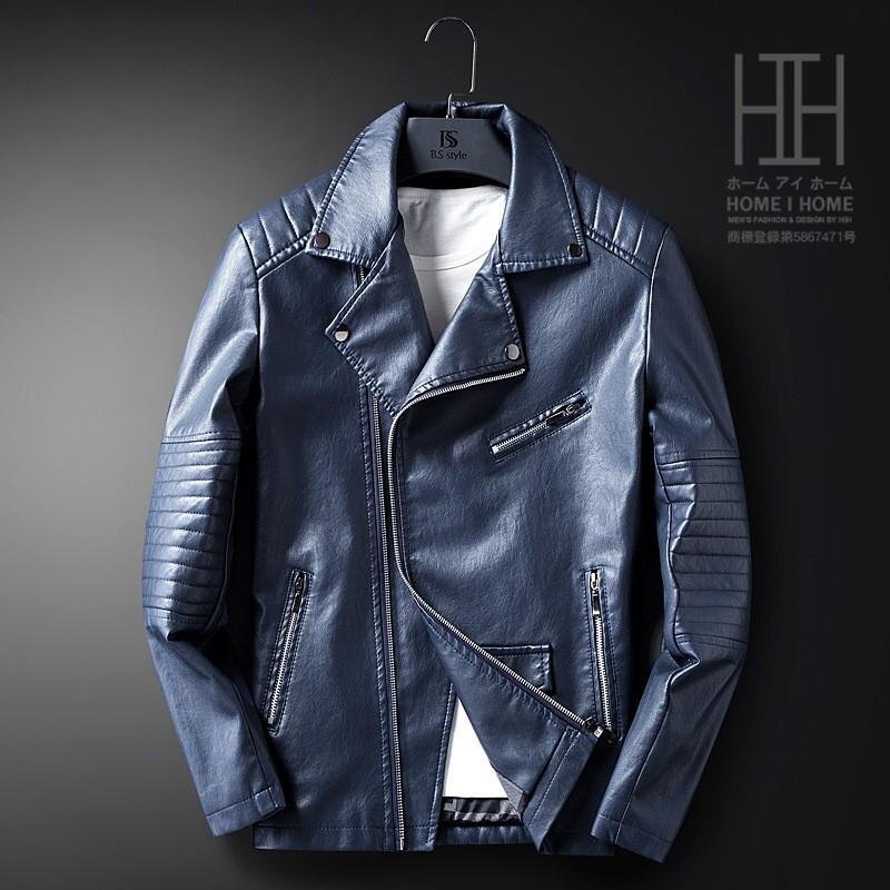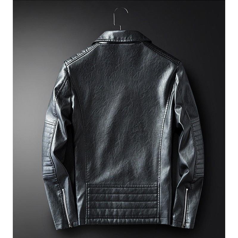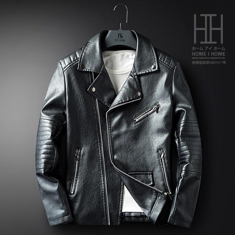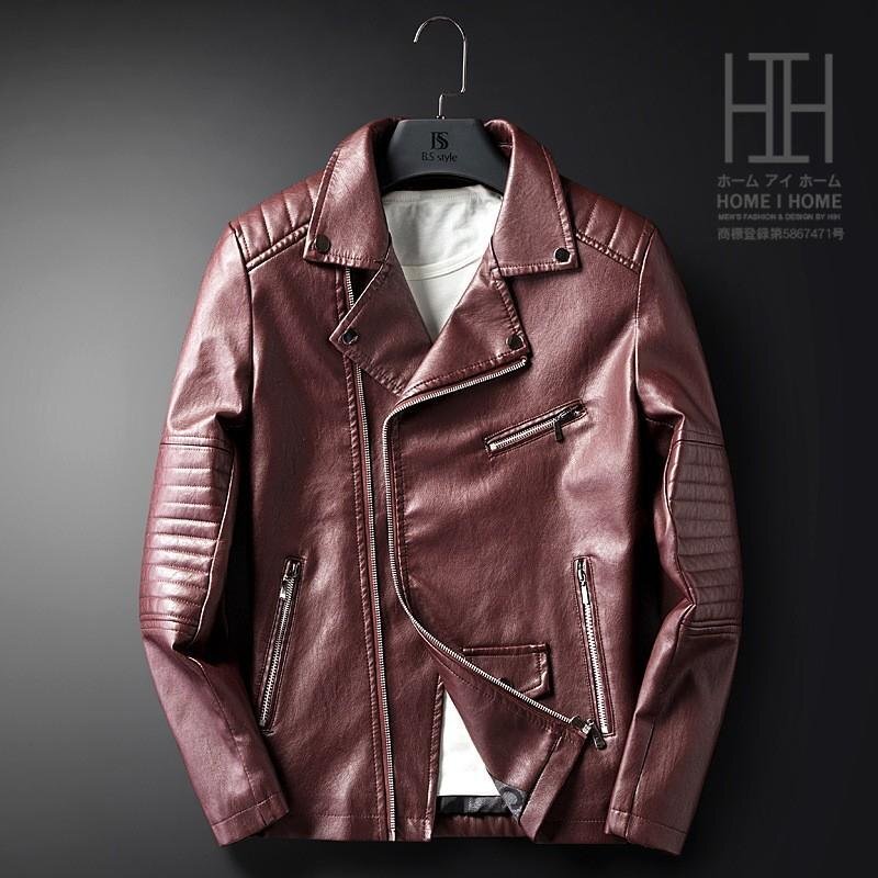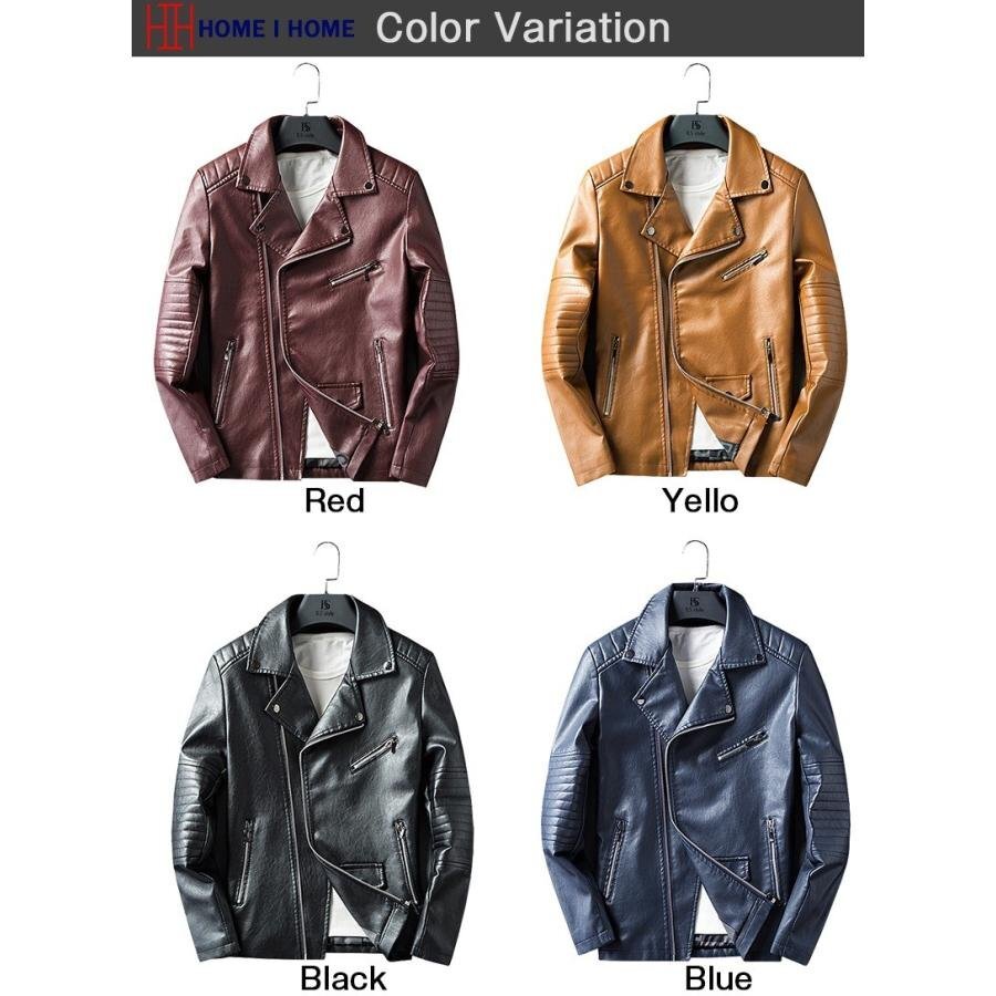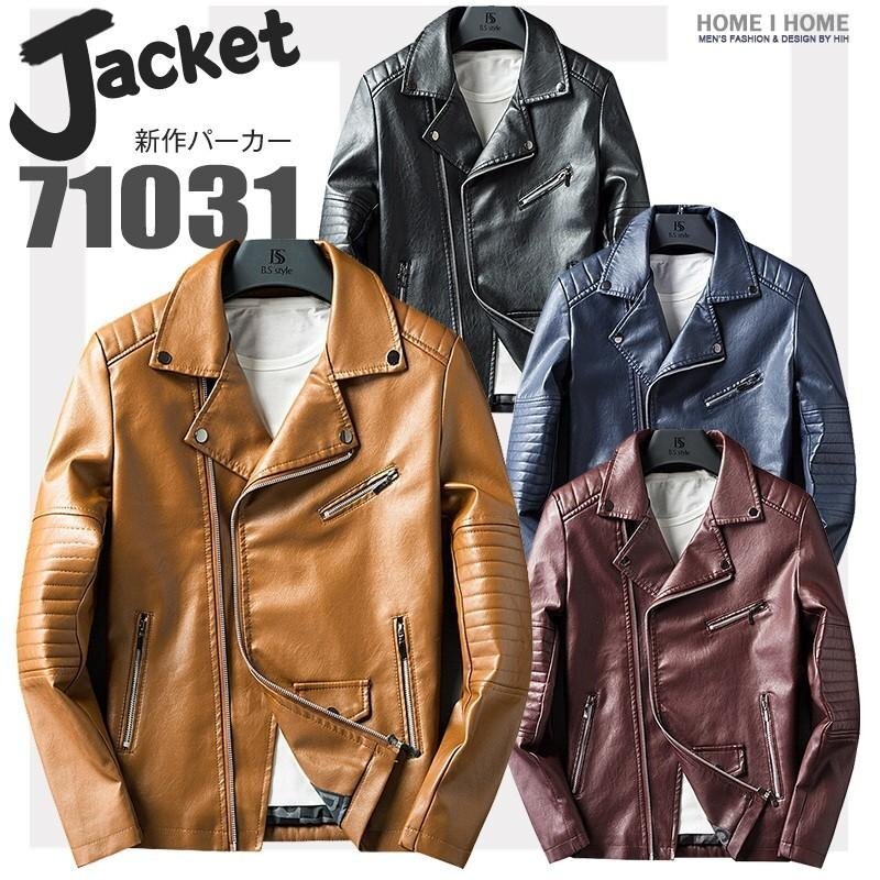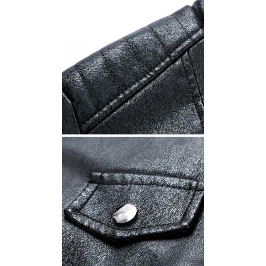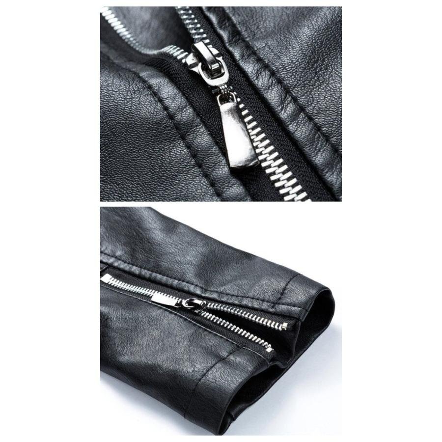 ライダースジャケット メンズ 革ジャン レザージャケット 開襟 スリム ロック系 PU 斜めファスナー