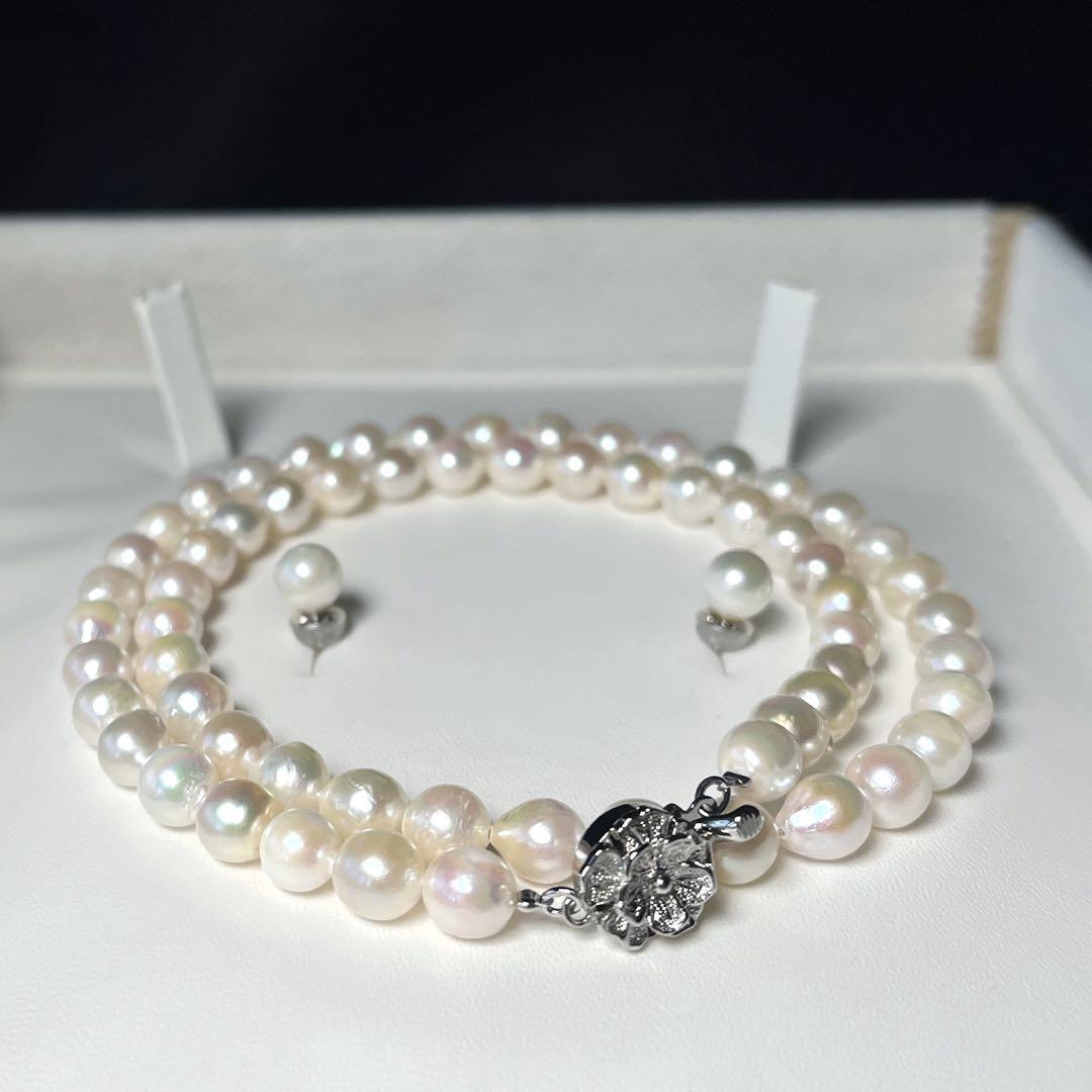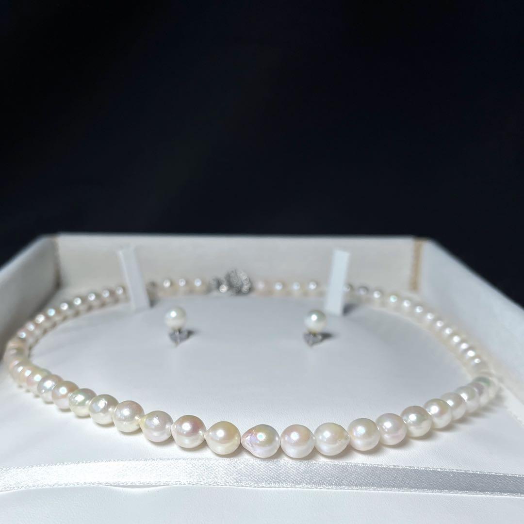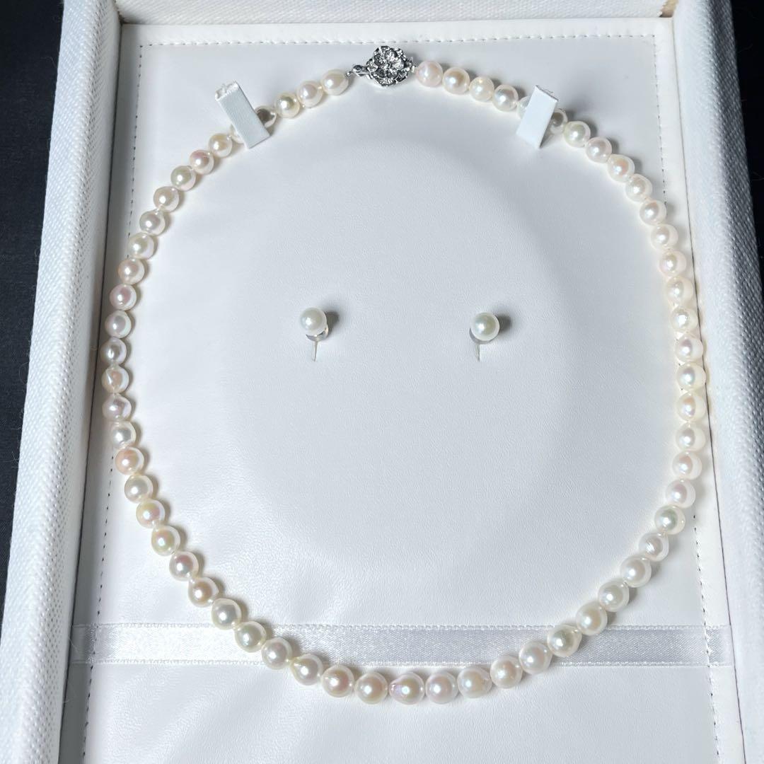 高級 あこや真珠 ネックレス&ピアス silver 6.5〜6.9㎜ M196
