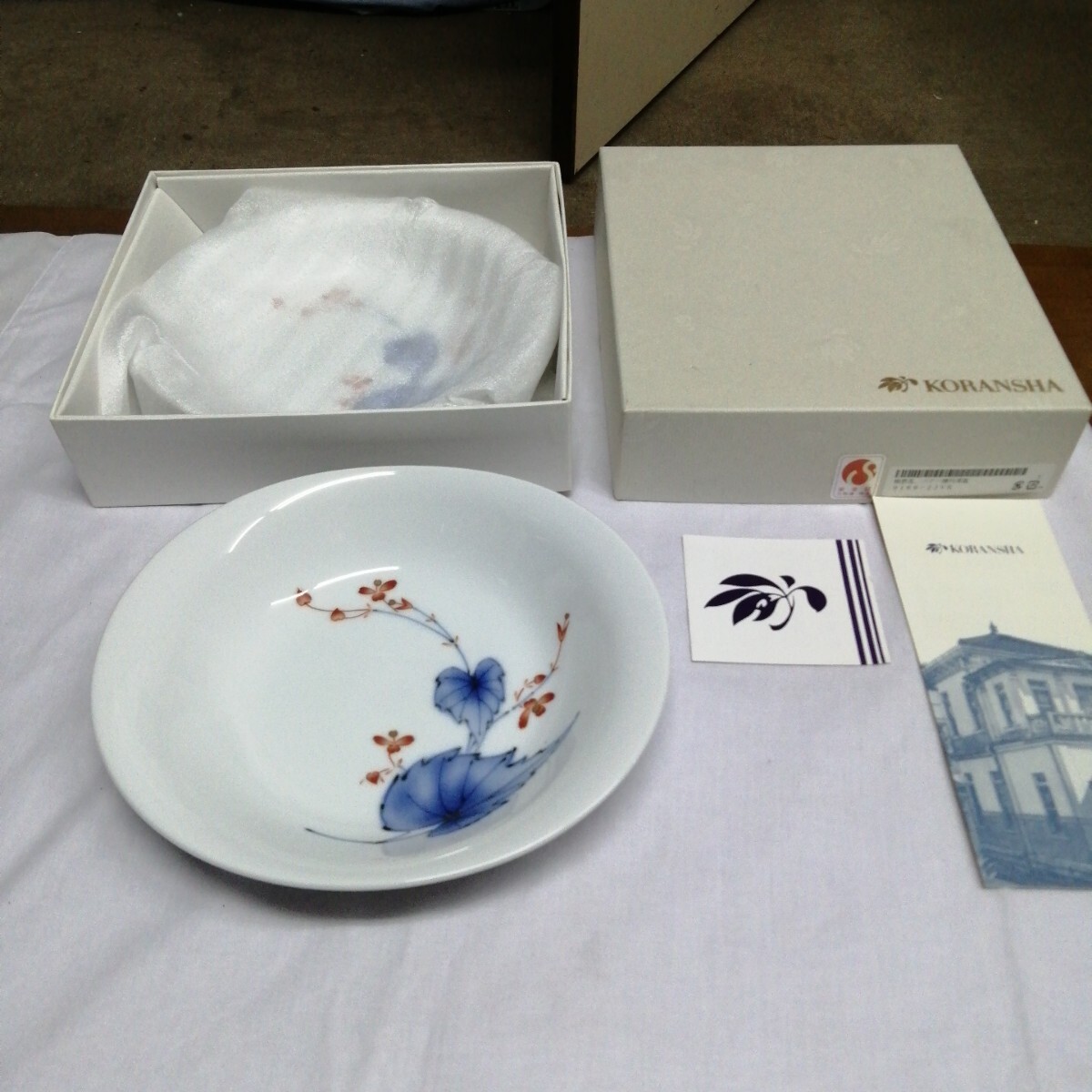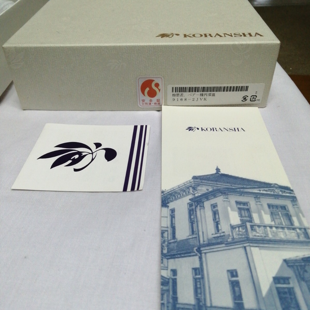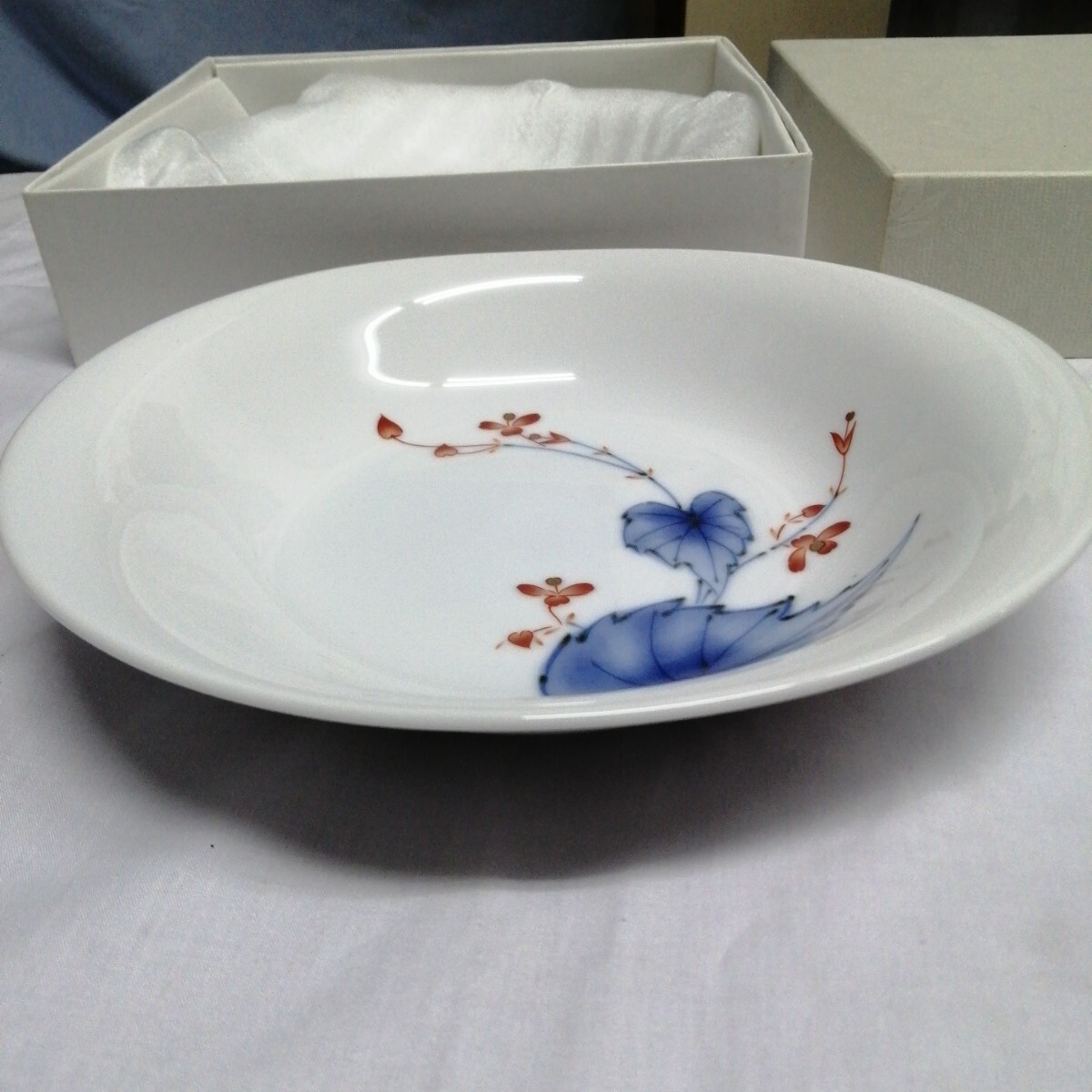 箱入未使用 計2枚 有田焼 香蘭社 相思花 ペアー楕円深皿 絵皿