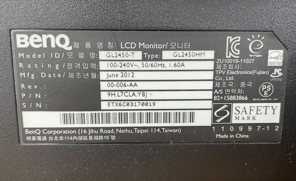 BenQ 24インチ ゲーミングモニター LCDモニター GL2450-T 2012年製 液晶ディスプレイモニター PCモニター 店頭引き渡し歓迎 札幌市手稲区