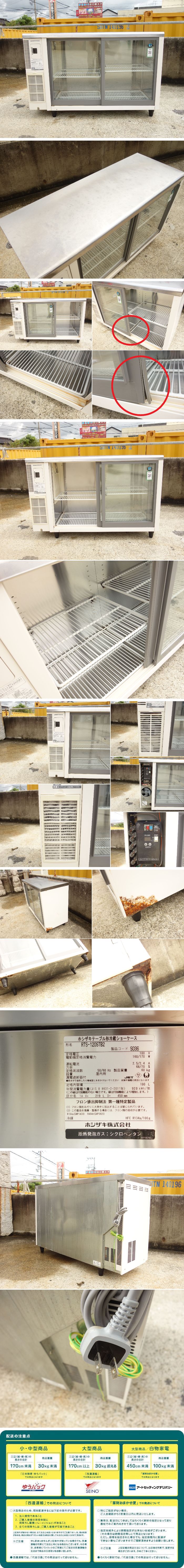【中古】M▽ホシザキ 業務用 冷蔵ショーケース 瓶冷やし スライド扉 ガラス扉 190L 幅1200×奥行450×高さ780 100V RTS-120STB2 (31611)