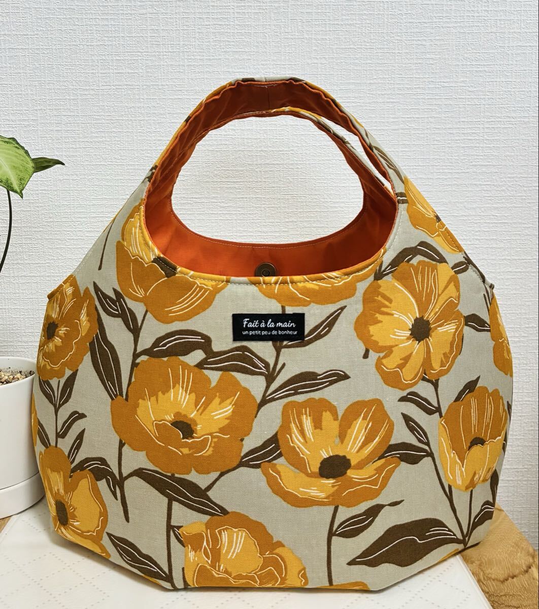 表生地に接着キルト芯を使用しましたので柔らかくふっくらしたバックに仕上がりました(*≧∀≦*)