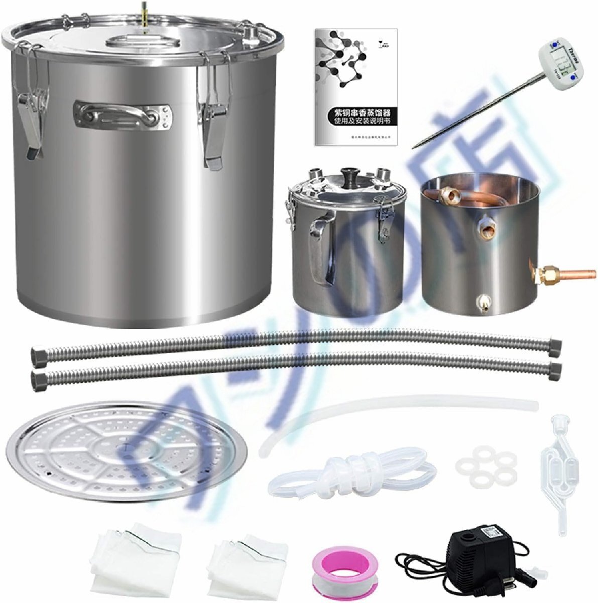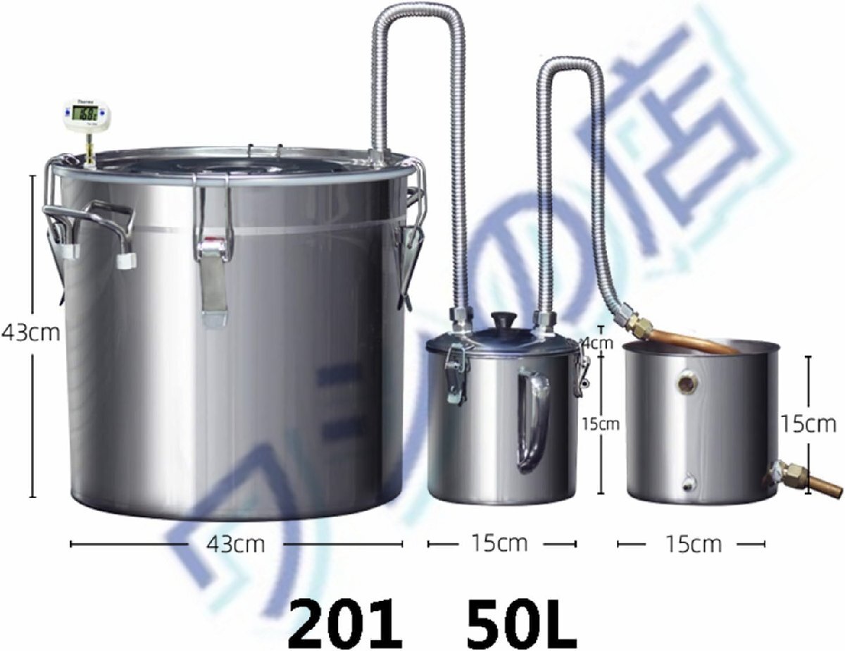50L ホーム蒸留器:ワイン醸造設備付き,水蒸気蒸留・温度計搭載,ウイスキー / 純露 / エッセンシャルオイル製造に適