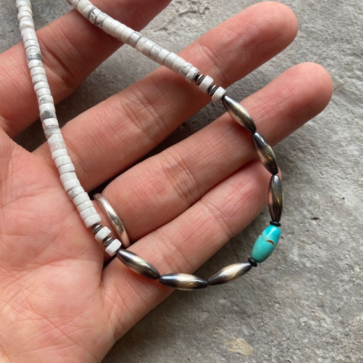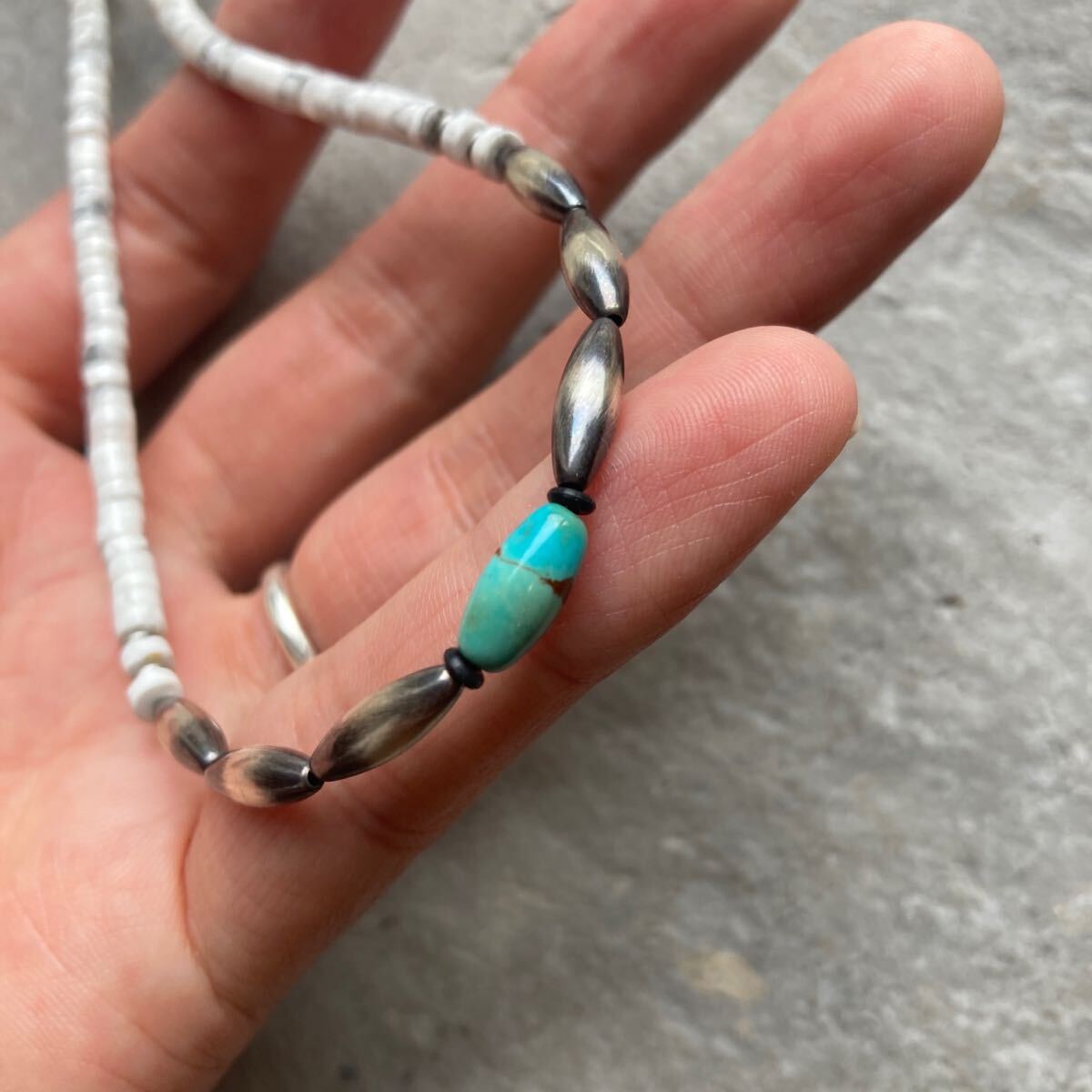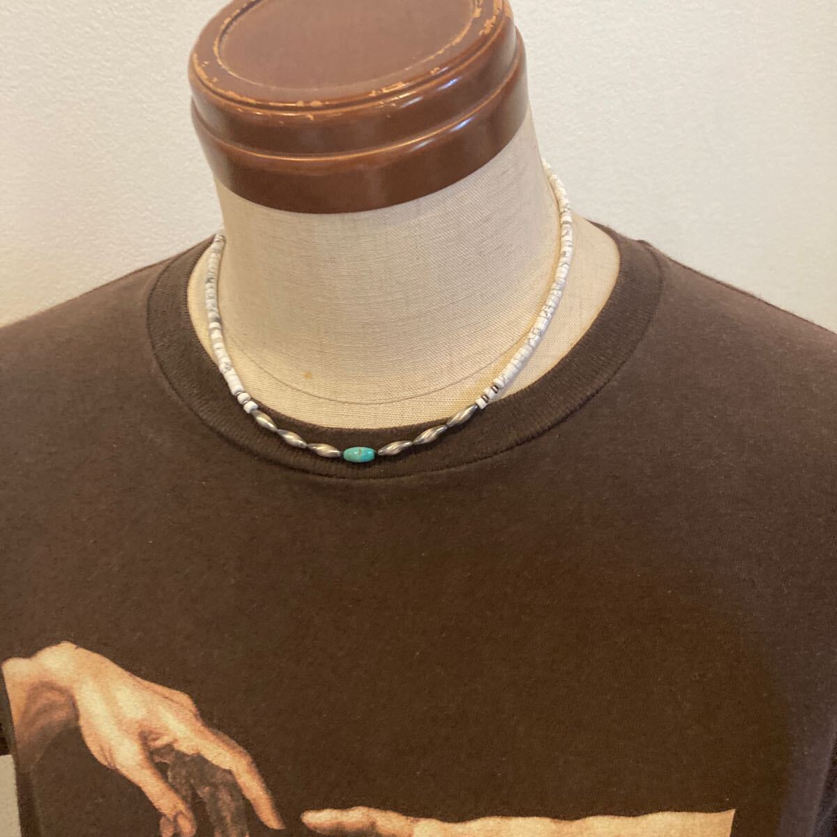 母岩が綺麗に入ったハウライトとSV925製ナバホパールに天然ターコイズを合わせたオリジナルデザインネックレスです。