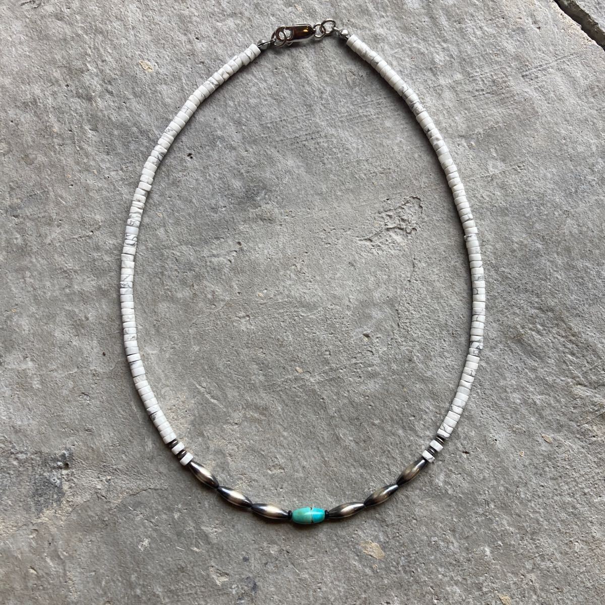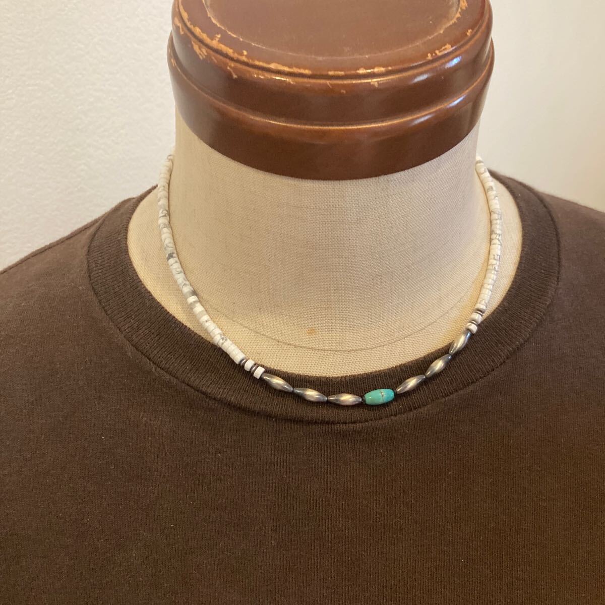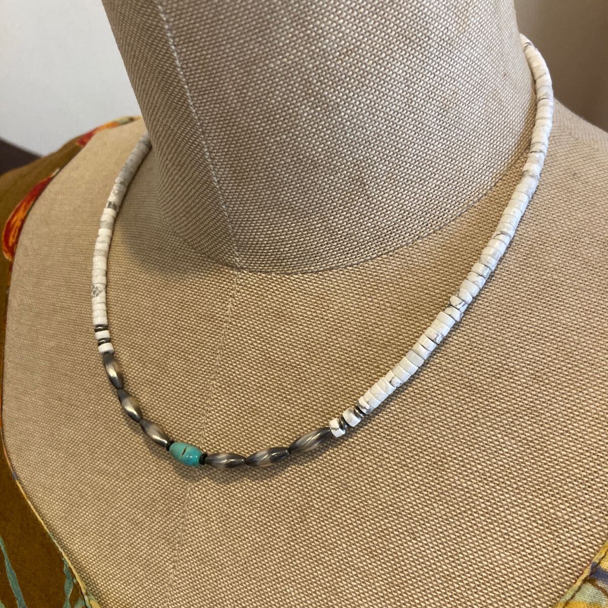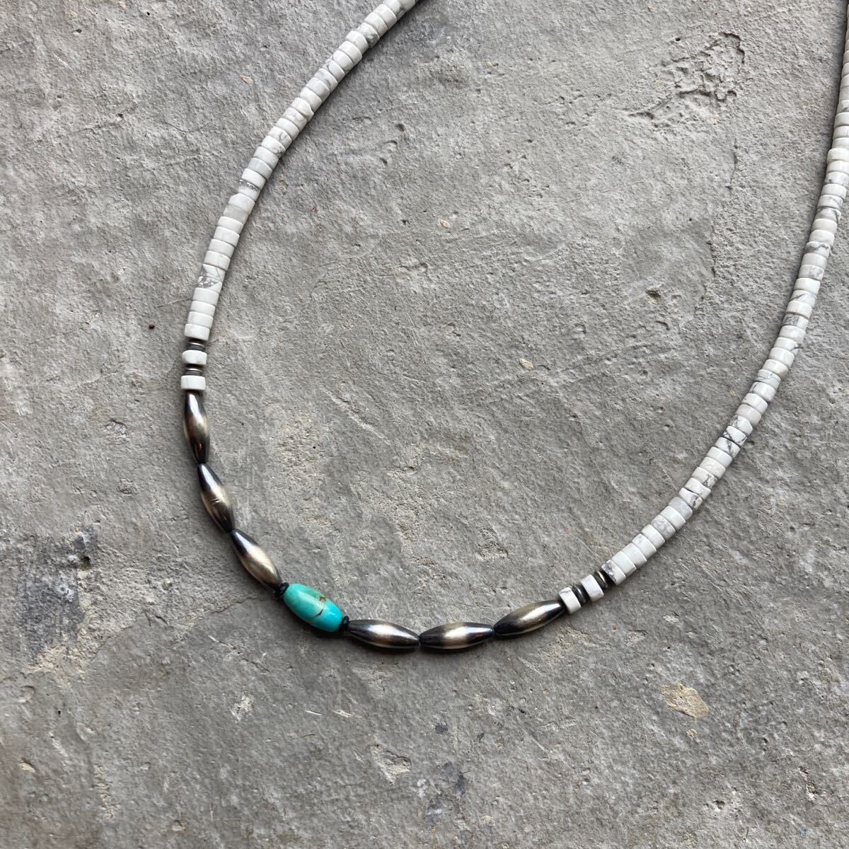 母岩が綺麗に入ったハウライトとSV925製ナバホパールに天然ターコイズを合わせたオリジナルデザインネックレスです。