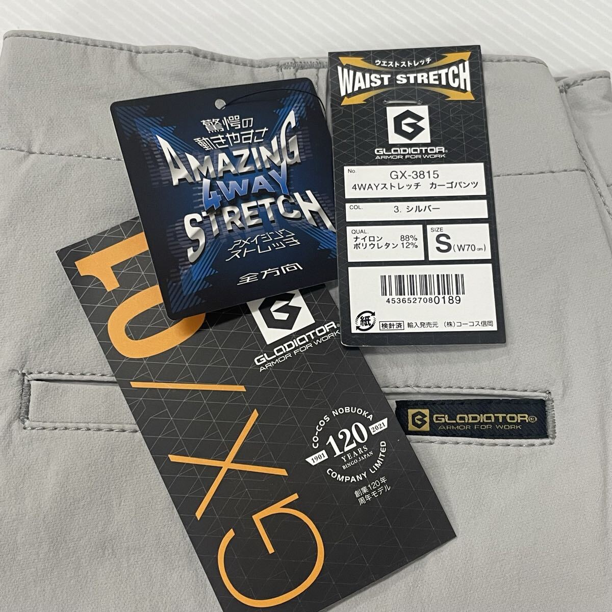 新品64478 グラディエーターGLADIATOR GX-3815 シルバー Sサイズ 4WAY ストレッチカーゴパンツ 作業服 ワークパンツ コーコス信岡