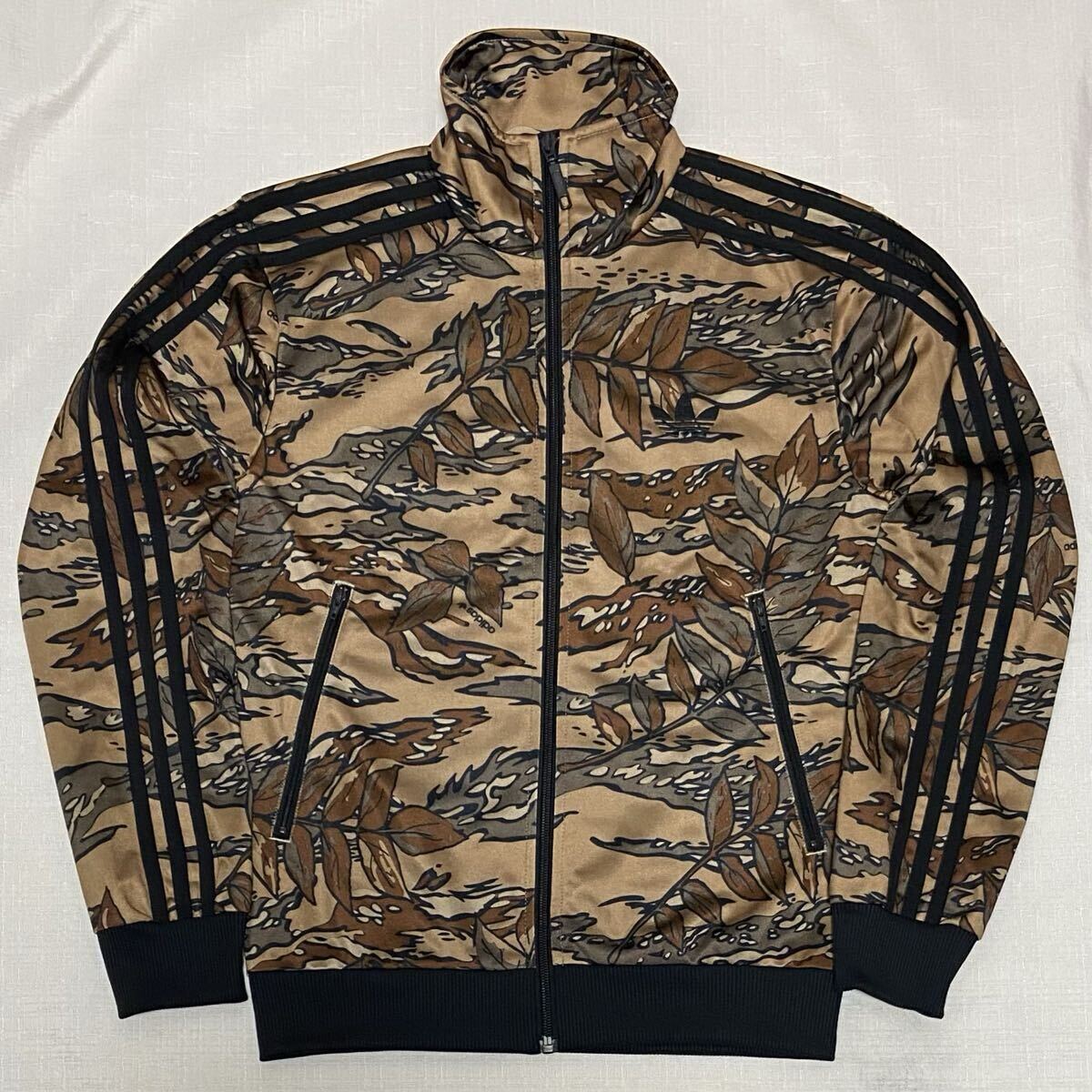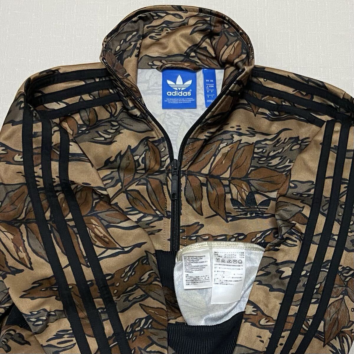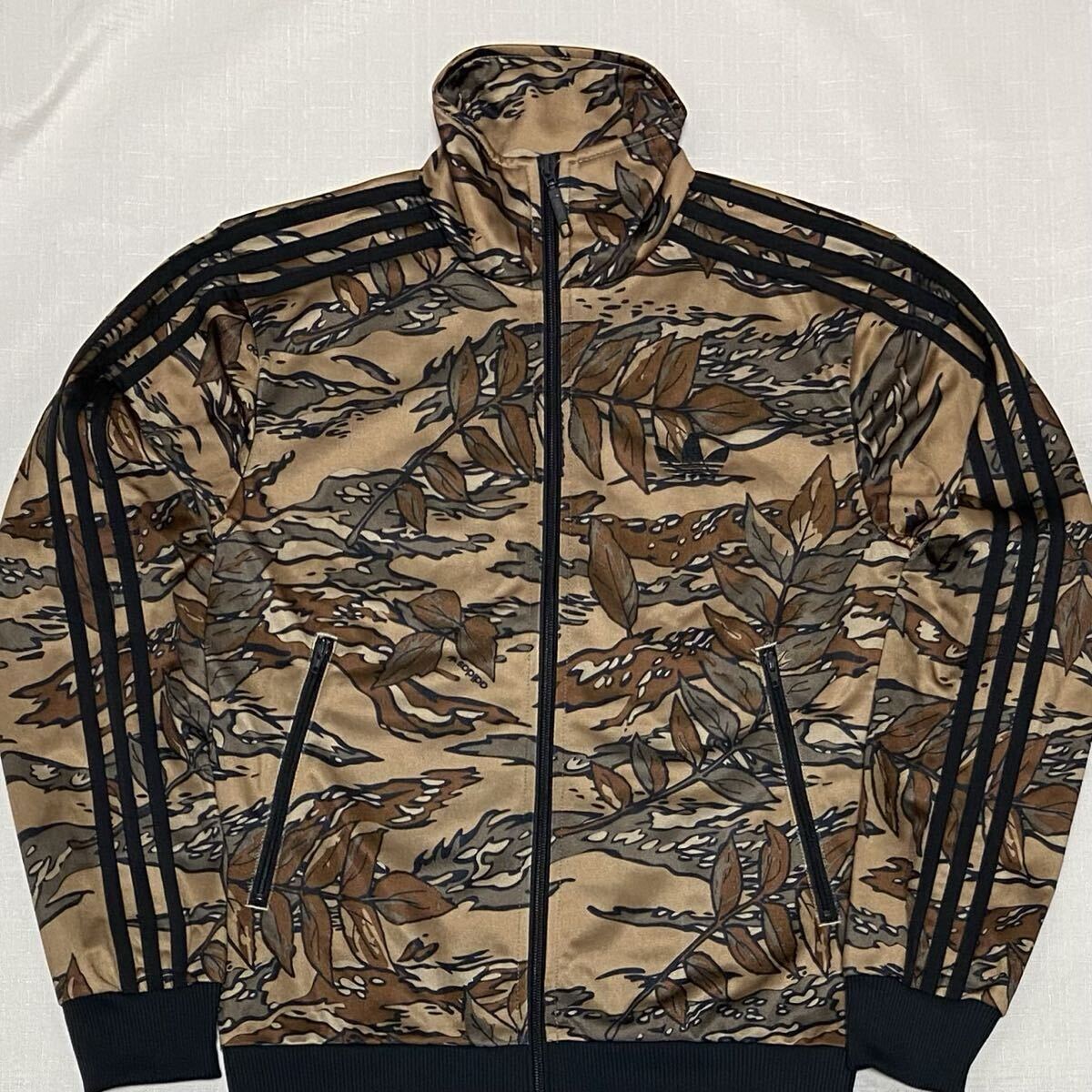 adidas アディダス オリジナルスの迷彩柄(カモフラージュ、リアルツリーカモ、総柄)のトレフォイルロゴのデカロゴのフルジップのジャージ(ファイヤーバードトラックトップ、トラックジャケット)のサイズXSです。