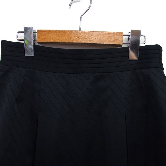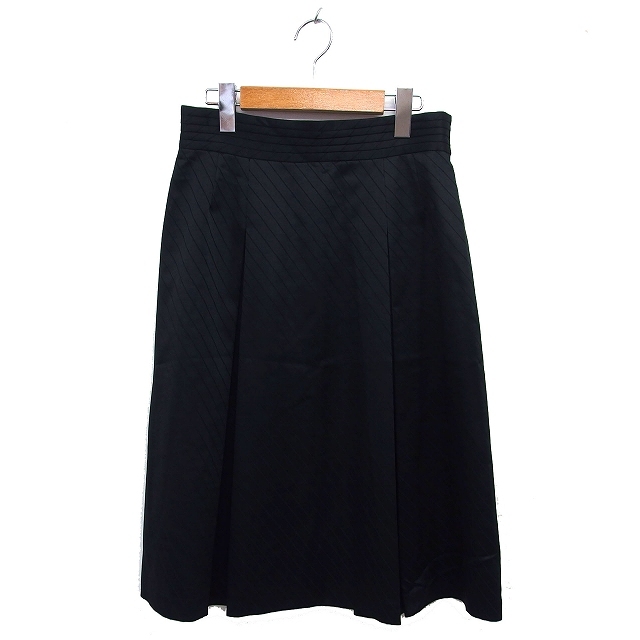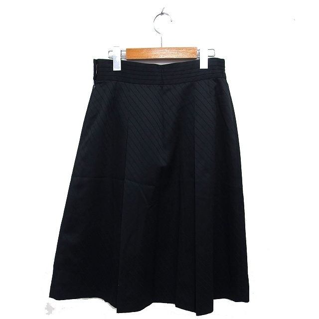 ニューヨーカー NEWYORKER タック スカート フレア ロング ストライプ ウール混 サイドジップ 64-91 黒 ブラック /NT9 レディース