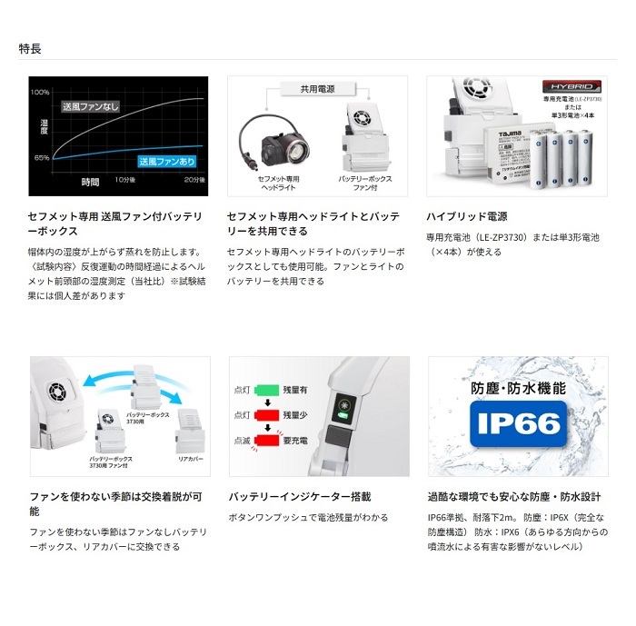 ●セフメット専用ヘッドライトとバッテリーを共用できる