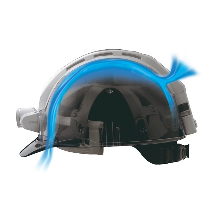 〈試験内容〉反復運動の時間経過によるヘルメット前頭部の湿度測定。(タジマ製製品比)