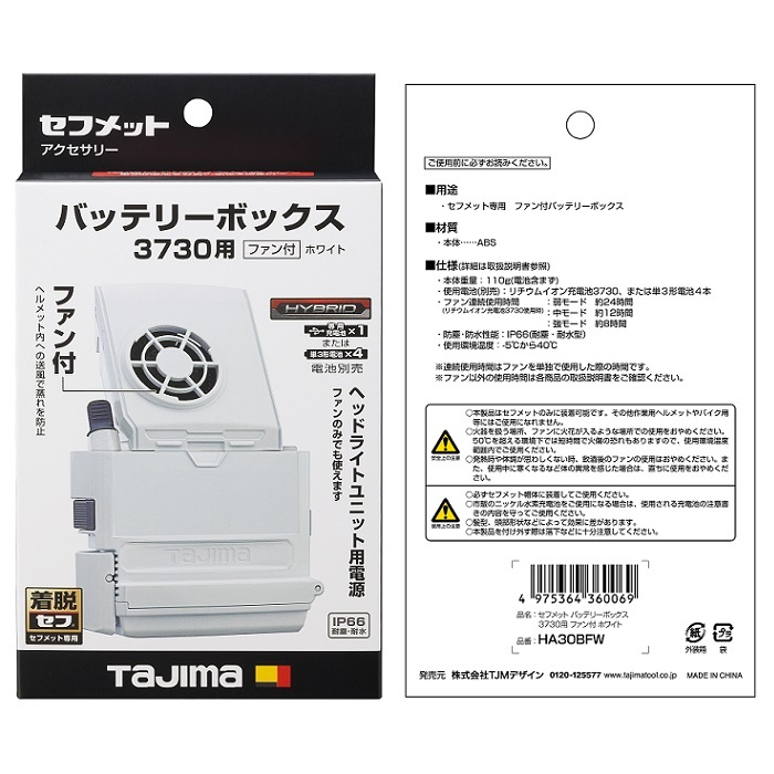 タジマ(TJMデザイン)製のセフメット バッテリーボックス3730用 ファン付 白 のHA30BFWです。