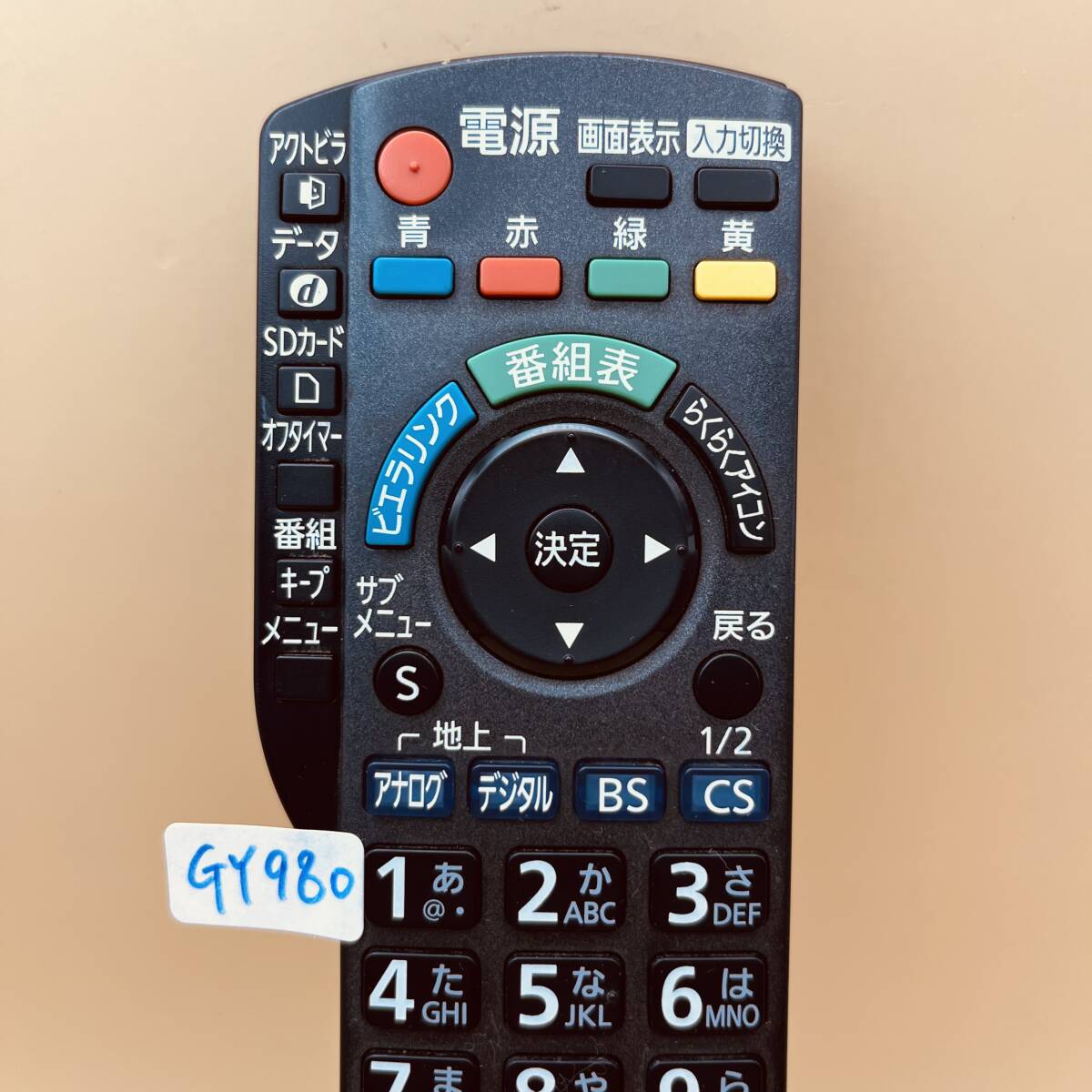 GY980★動作保証あり Panasonic パナソニック テレビ リモコン N2QAYB000481
