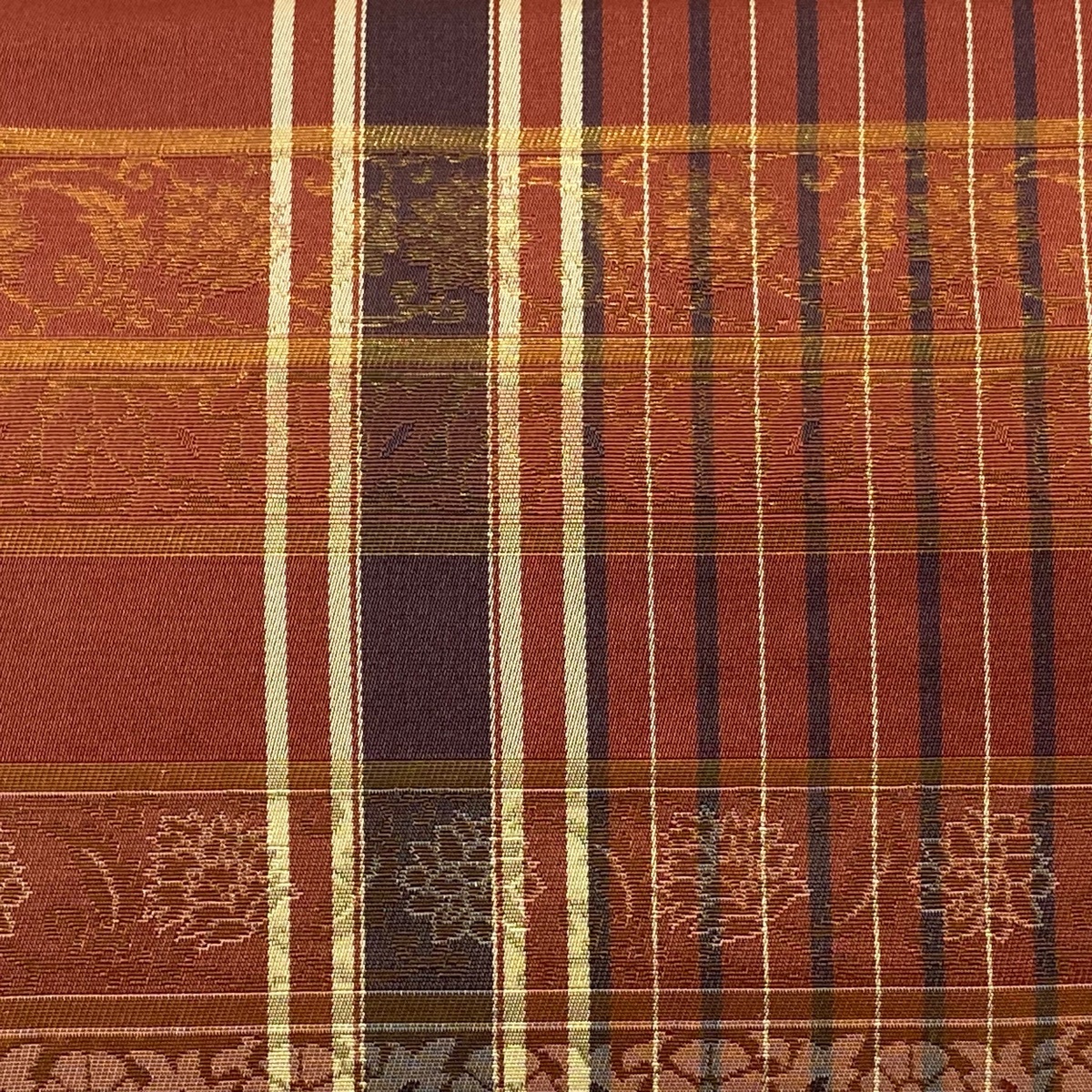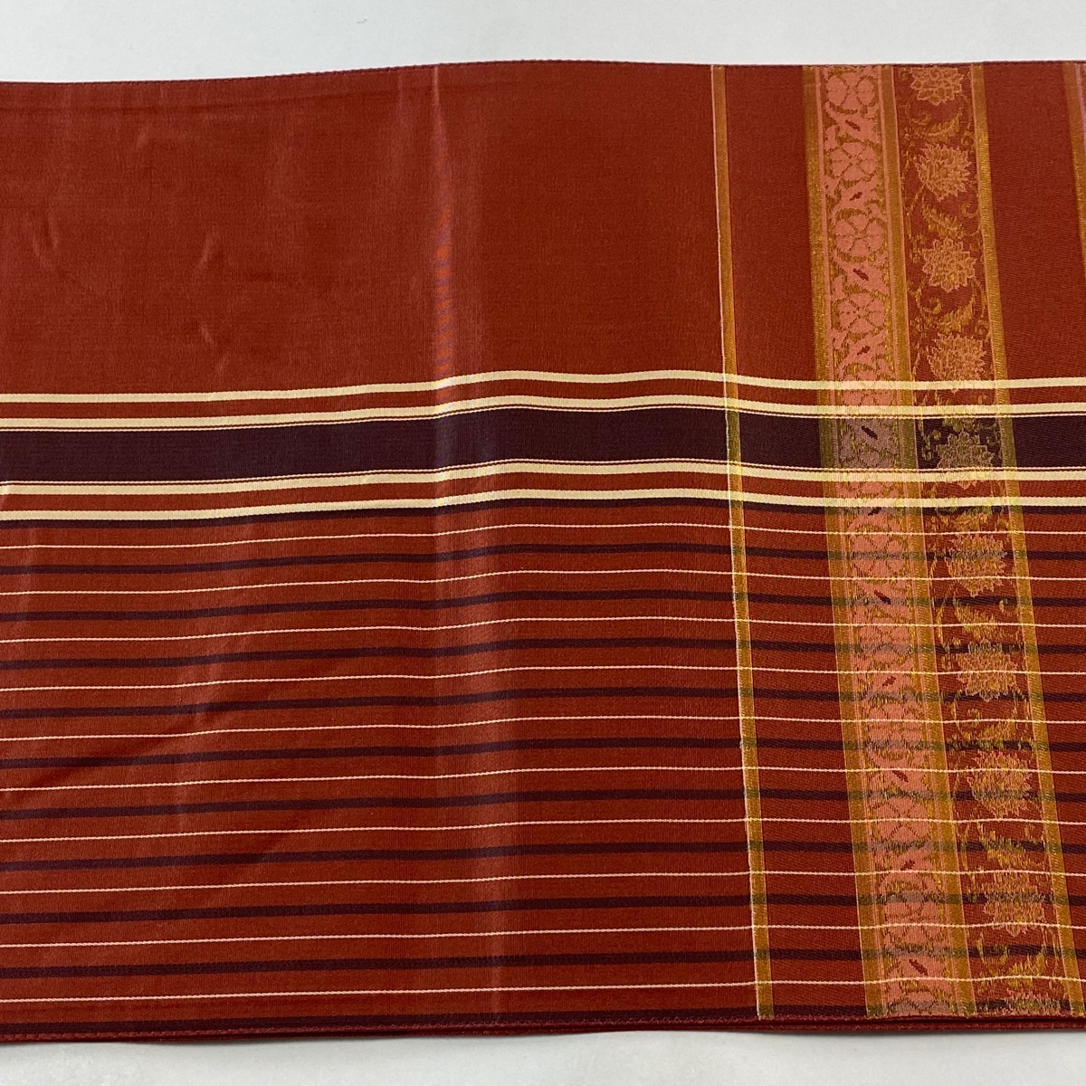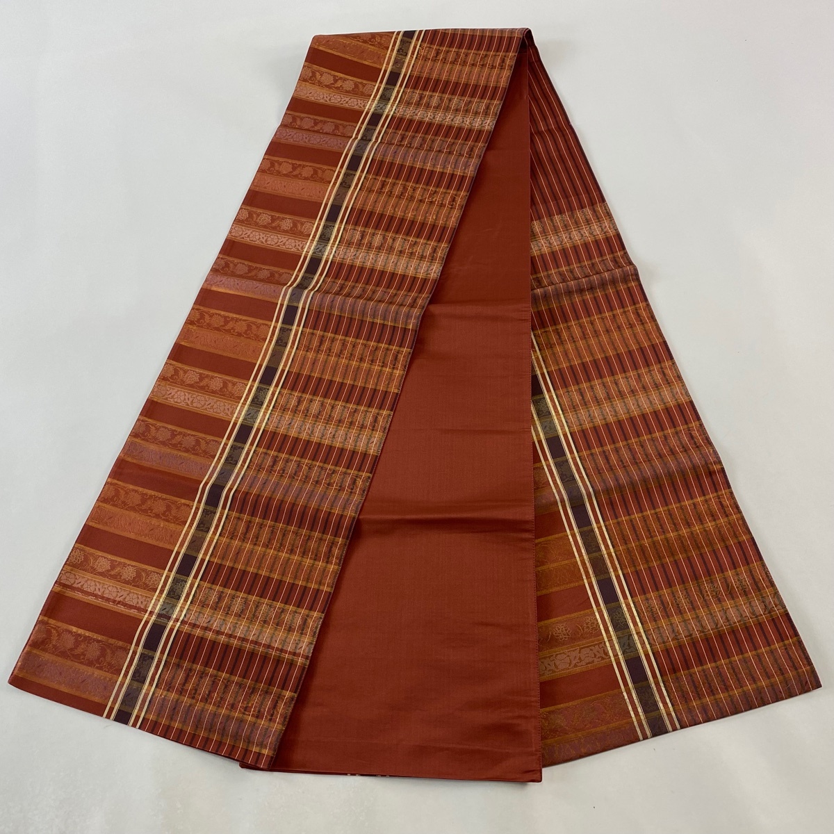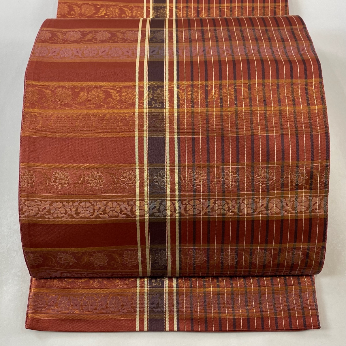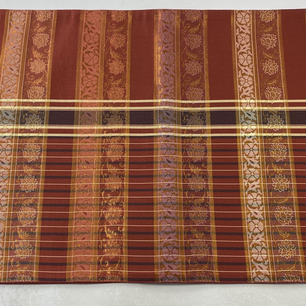 | 袋帯 美品 秀品 段縞 草花 箔 茜色 正絹 【中古】 |