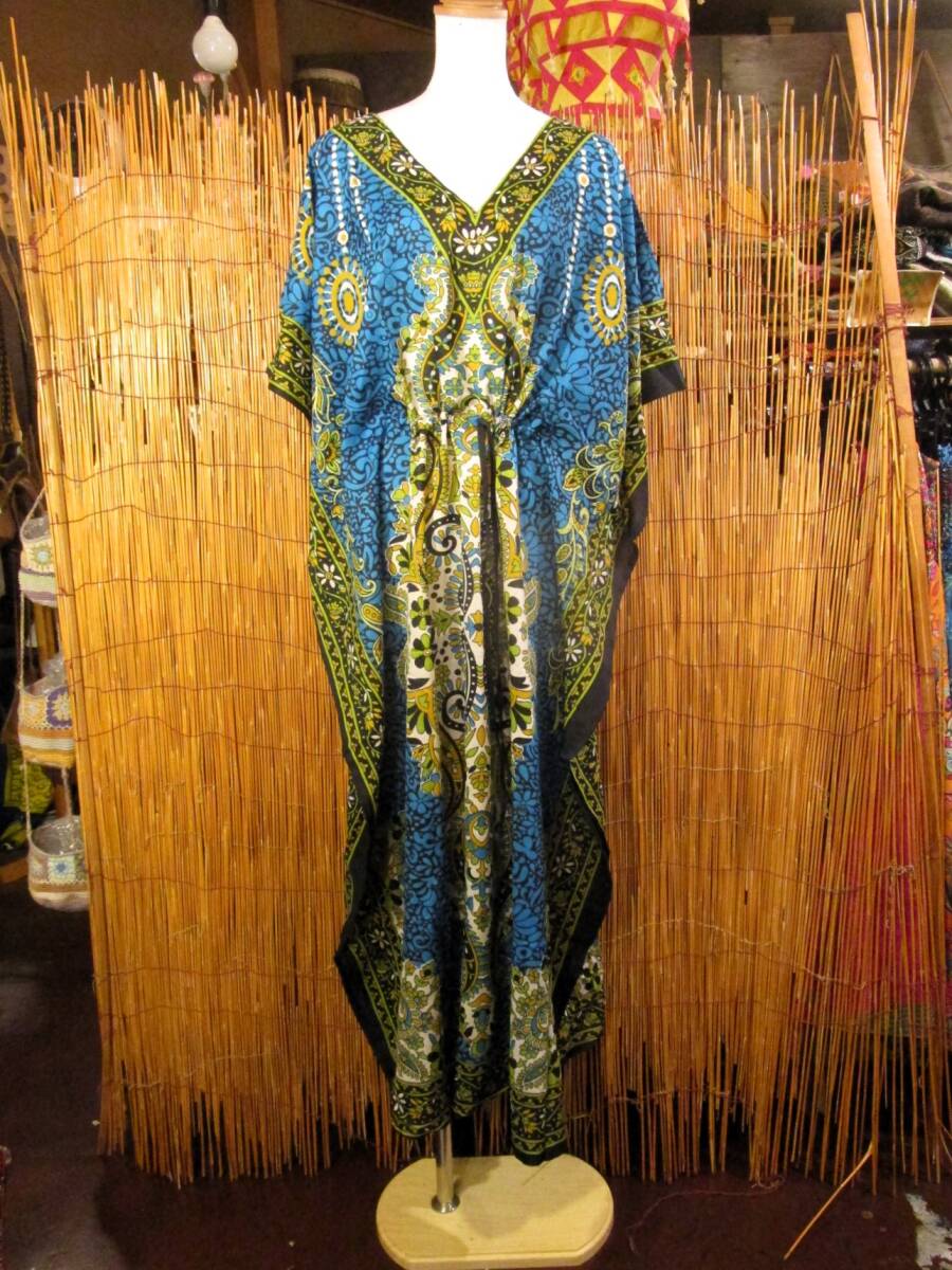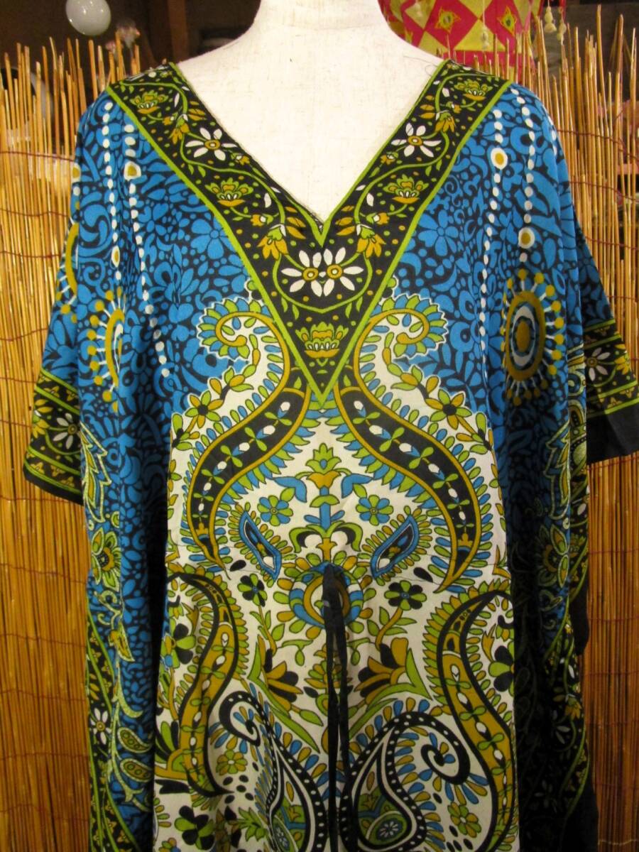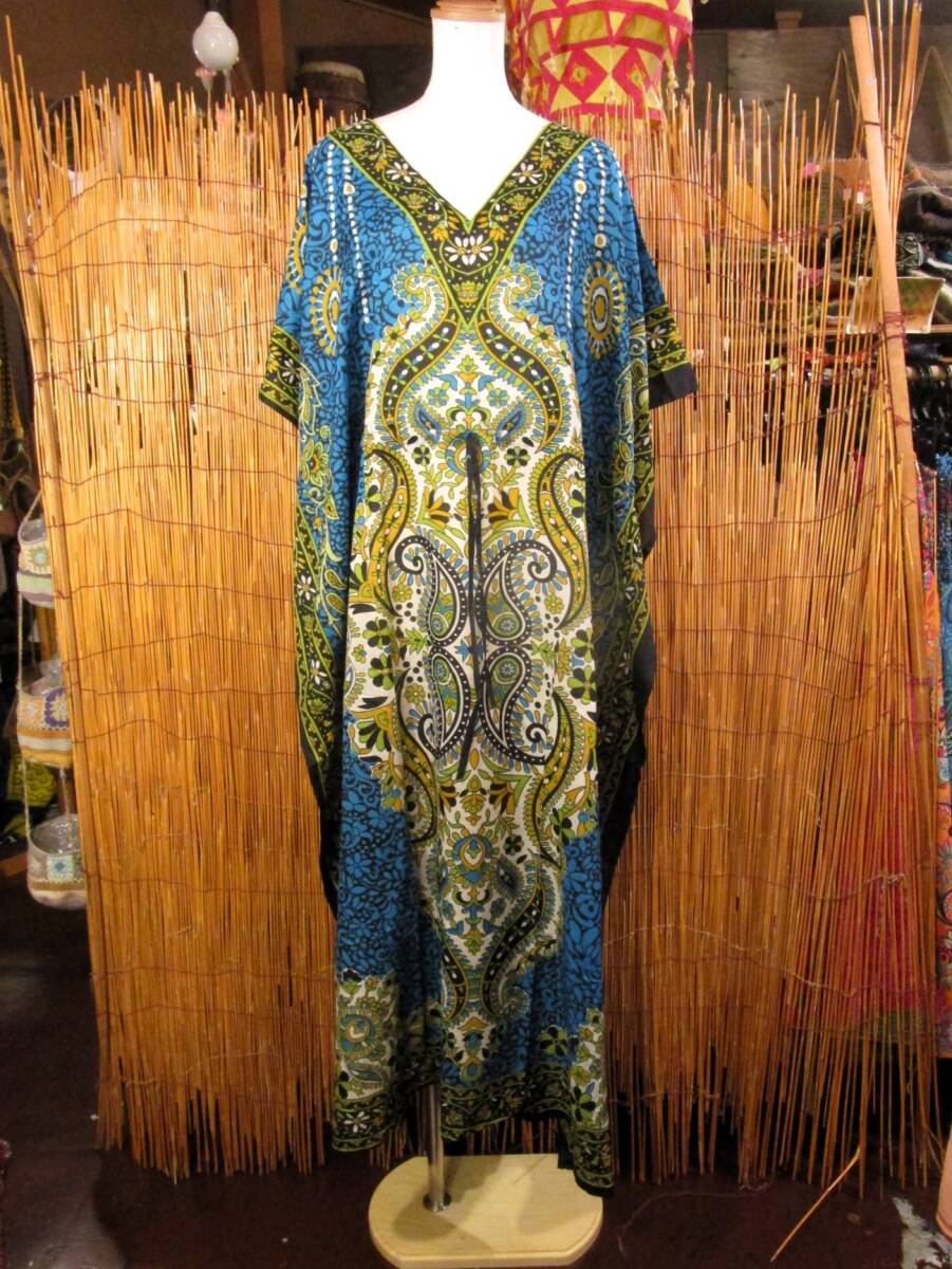 ⑨新品*薄手ビスコース素材*ゆったりサイズ *アジアンプリント*ガラベーヤ*ポンチョ風*マキシ丈*ワンピース*ベリーダンス