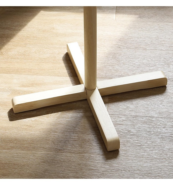 | 見せる収納にぴったりな天然木(ラバーウッド)のポールハンガーです。 接続部は全てネジ式なので、工具不要、組立カンタンです。 Π40mmの太めの支柱を使用。 |