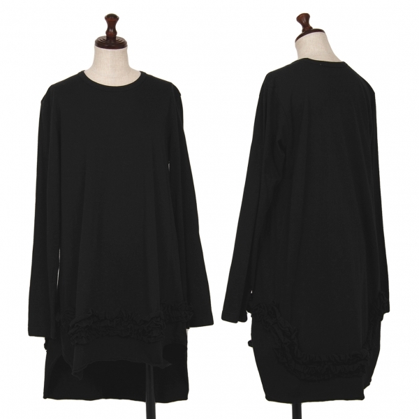 | コムコム コムデギャルソンCOMME des GARCONS 裾ギャザーフリルカットソーワンピース 黒M |