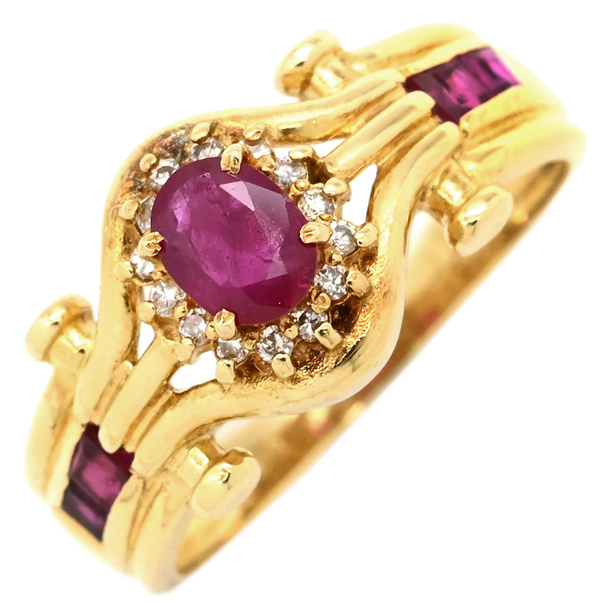ノンブランド NON BRAND リング 指輪 K18YG ルビー ダイヤモンド イエローゴールドAu750 18K 18金 レッド 赤 - 13.5号 レディース定番 人気 美品 中古 | |