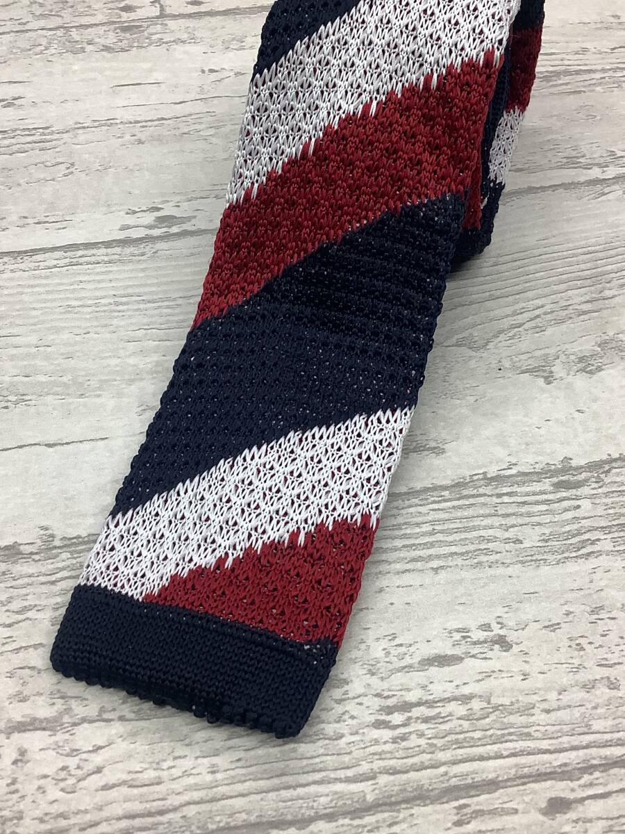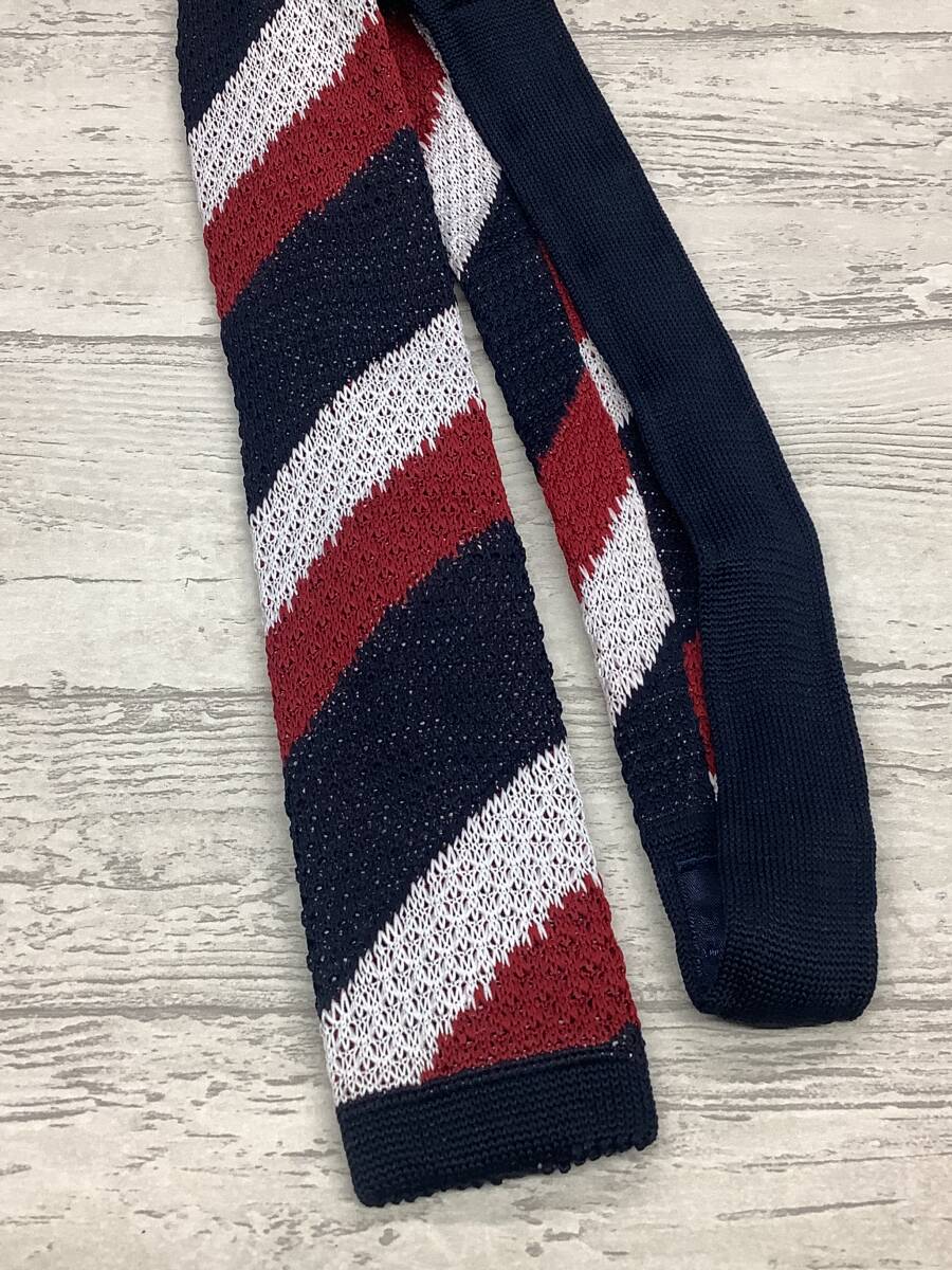 新作 新品未使用  ニットタイ 珍しいストライプ柄 ネイビー赤白 大剣6cm お買い得サービス