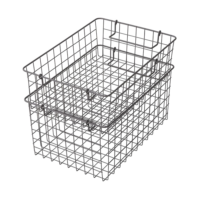 | 持ち手がついているので持ち運びがしやすく、持ち手を内側にすれば、スタッキングできるバスケットです。 |
