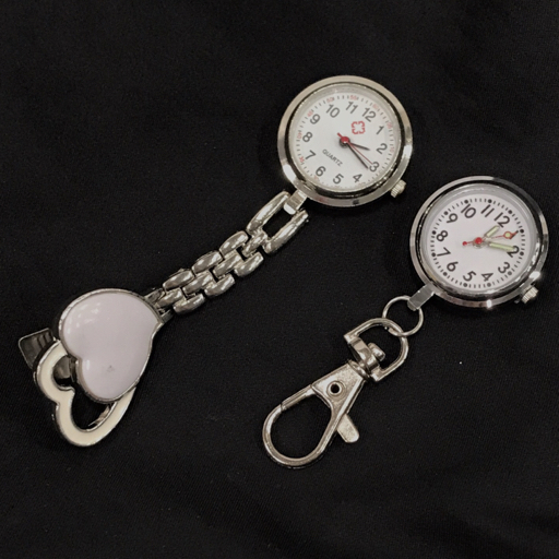 送料360円 ブランド不明 ナースウォッチ カラビナ時計 クォーツ 逆さ文字盤 ファッション小物 2点 セット 同梱NG |