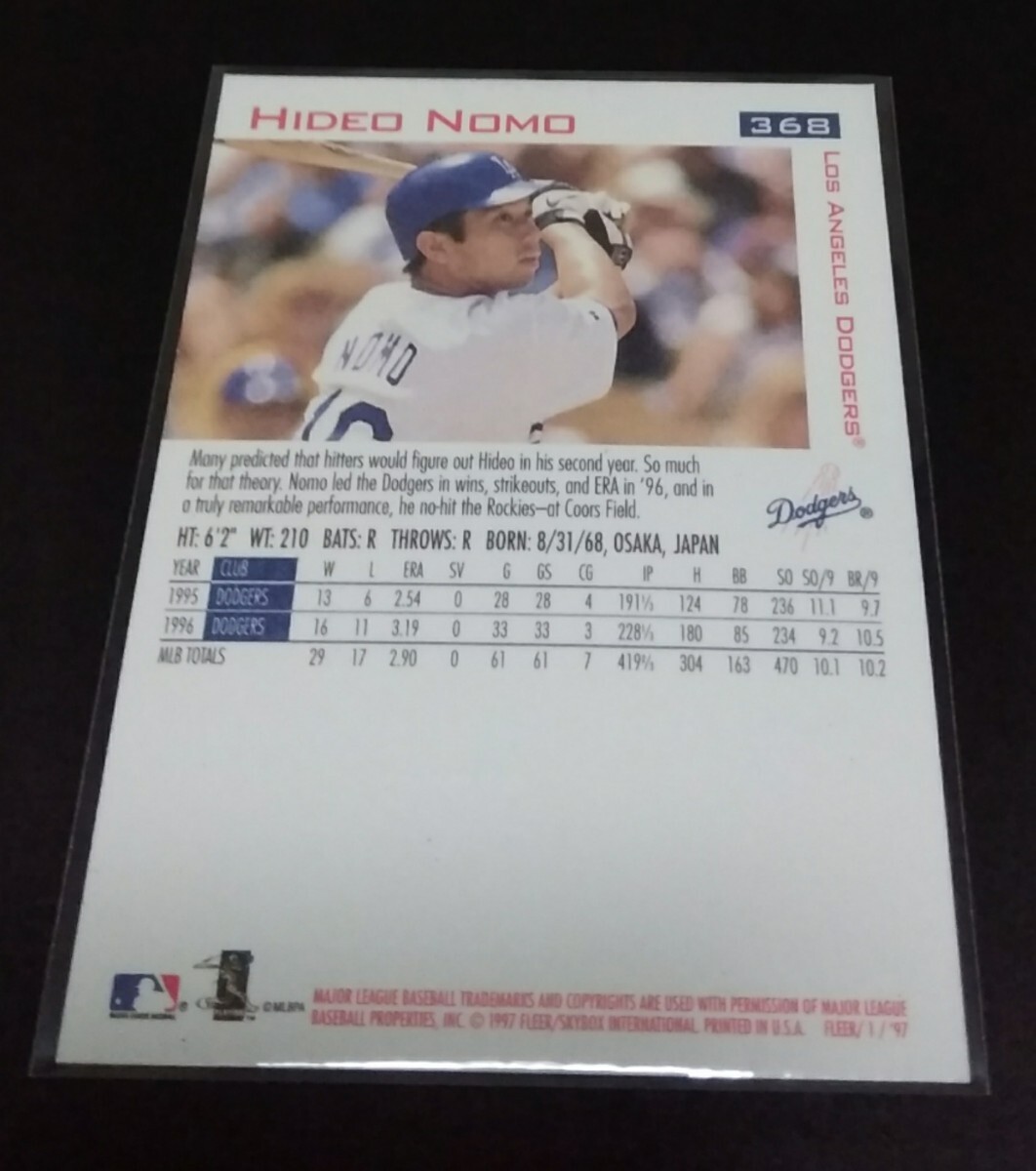 MLB 1997年FLEER 野茂英雄(ドジャース) No,368。Dodgers HIDEO NOMO