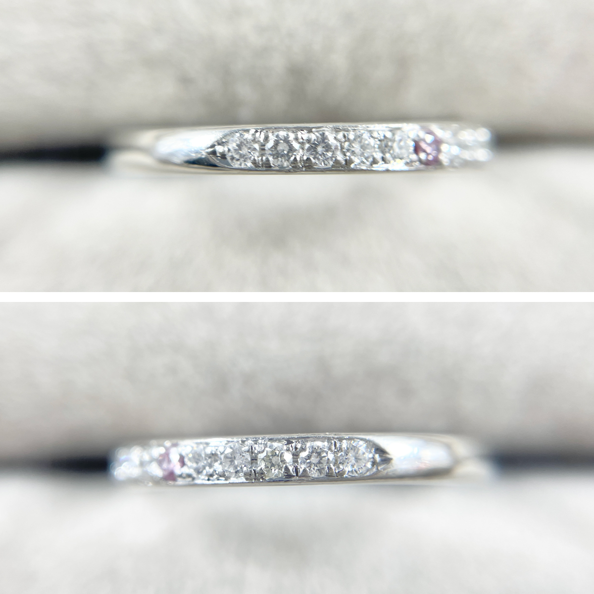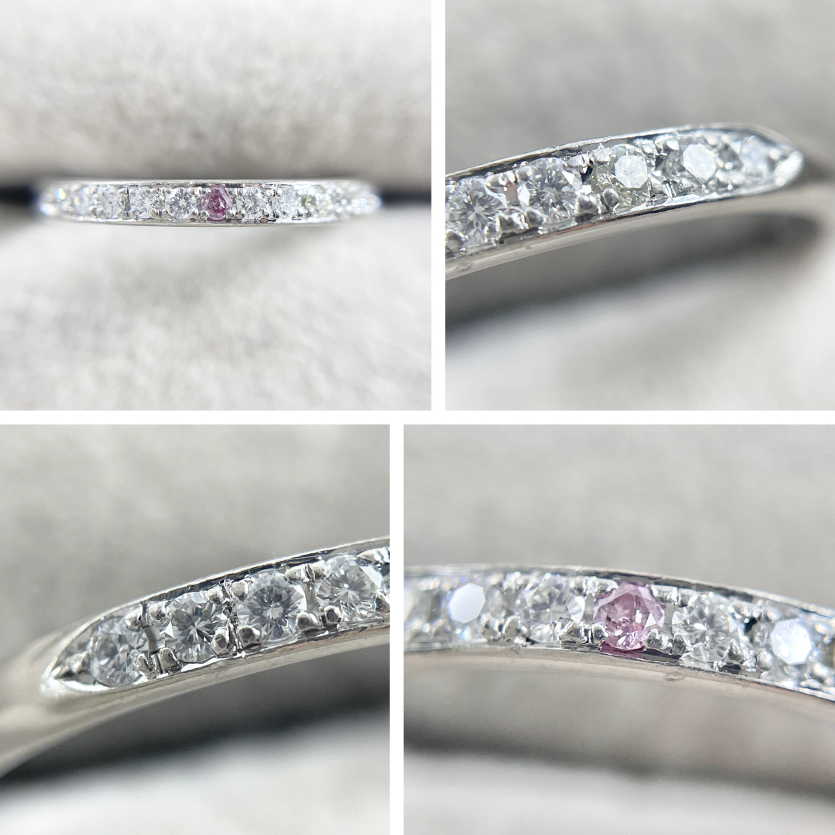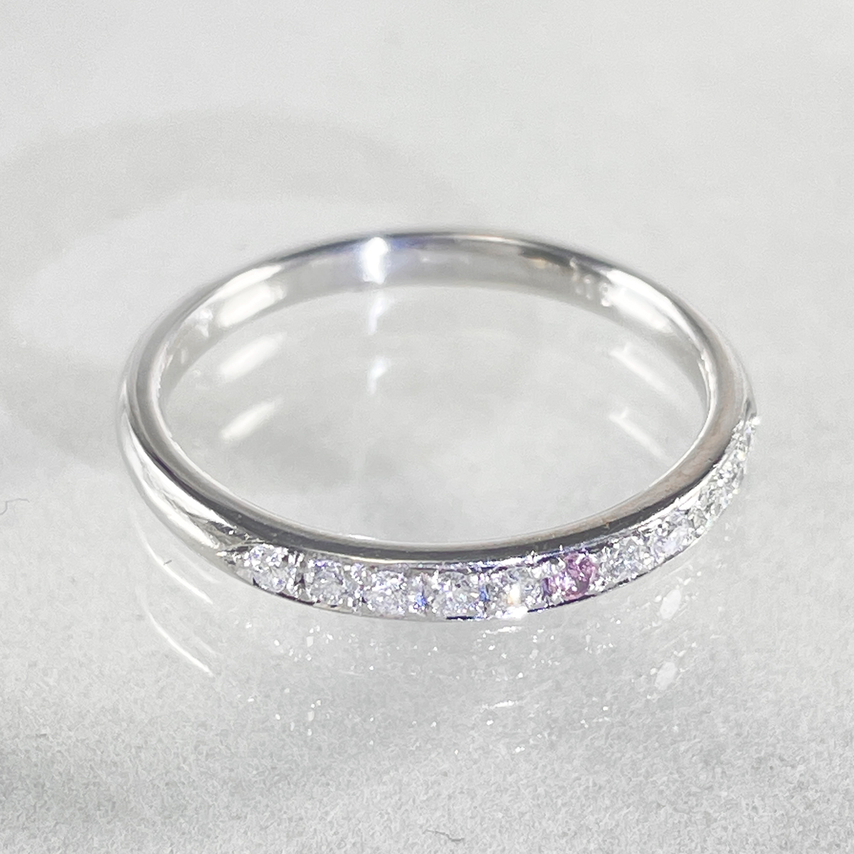 ピンクダイヤが可愛いアクセントのハーフエタニティリング。