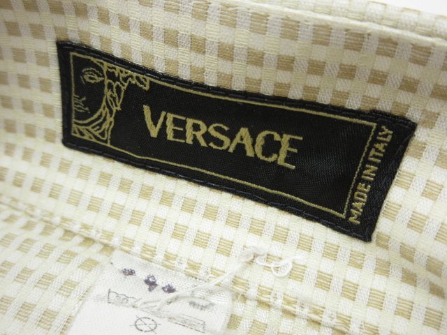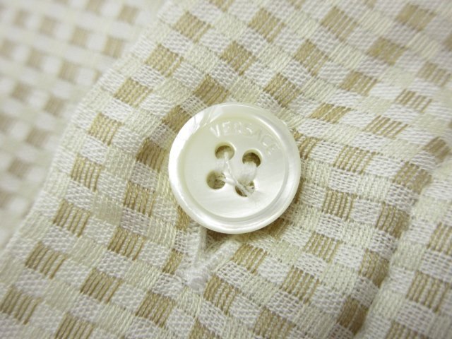 【VERSACE ヴェルサーチ】 コットン100% 隠しボタンダウン 織柄 比翼ボタンシャツ (メンズ) size50 ベージュ系 イタリア製 ◇33MK6055◇