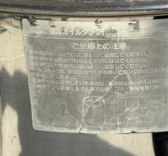 15 福岡発 長府製作所  ステンレス灯油タンク 約82L 中古 灯油ボイラー 丸型 中古 メンテナンス済
