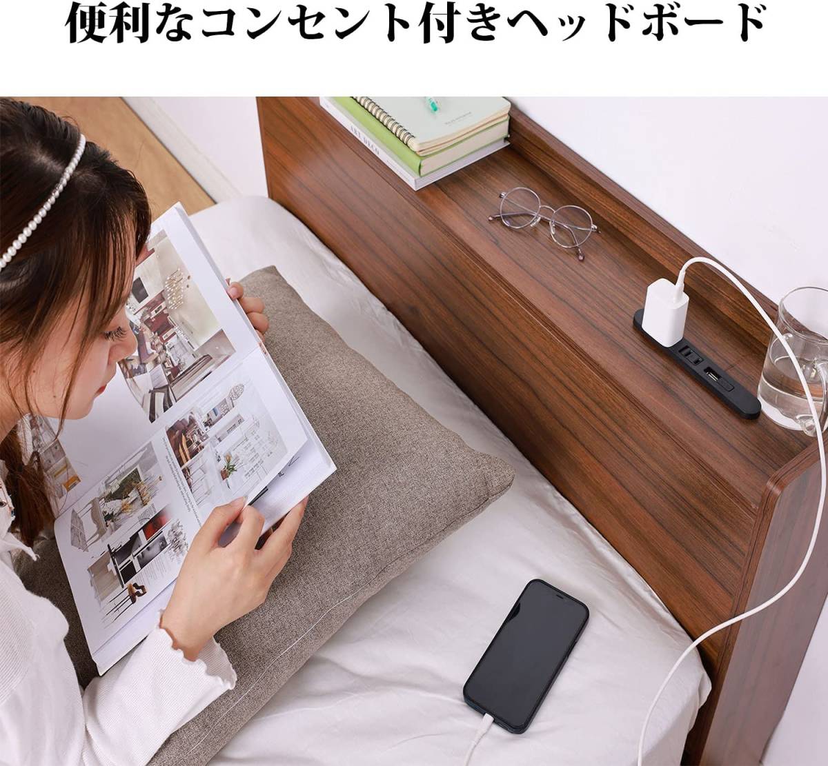 • 【棚&コンセント付き】便利な棚が付いており、小物を手の届く範囲に置いておけます。コンセントも用意されており、スマホなどの充電に役立ちます。