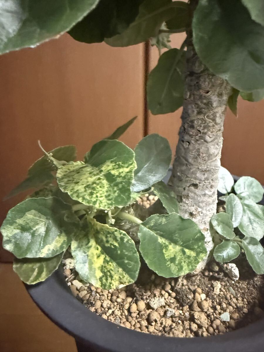 ドルステニアフォエチダです。所々斑が強く出ている葉があります。