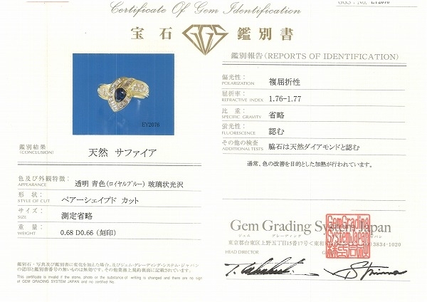K18YG リング 指輪 11.5号 ロイヤルブルー サファイア 0.68 ダイヤ 0.66 鑑別書 総重量約5.2g 中古 美品 送料無料 | |