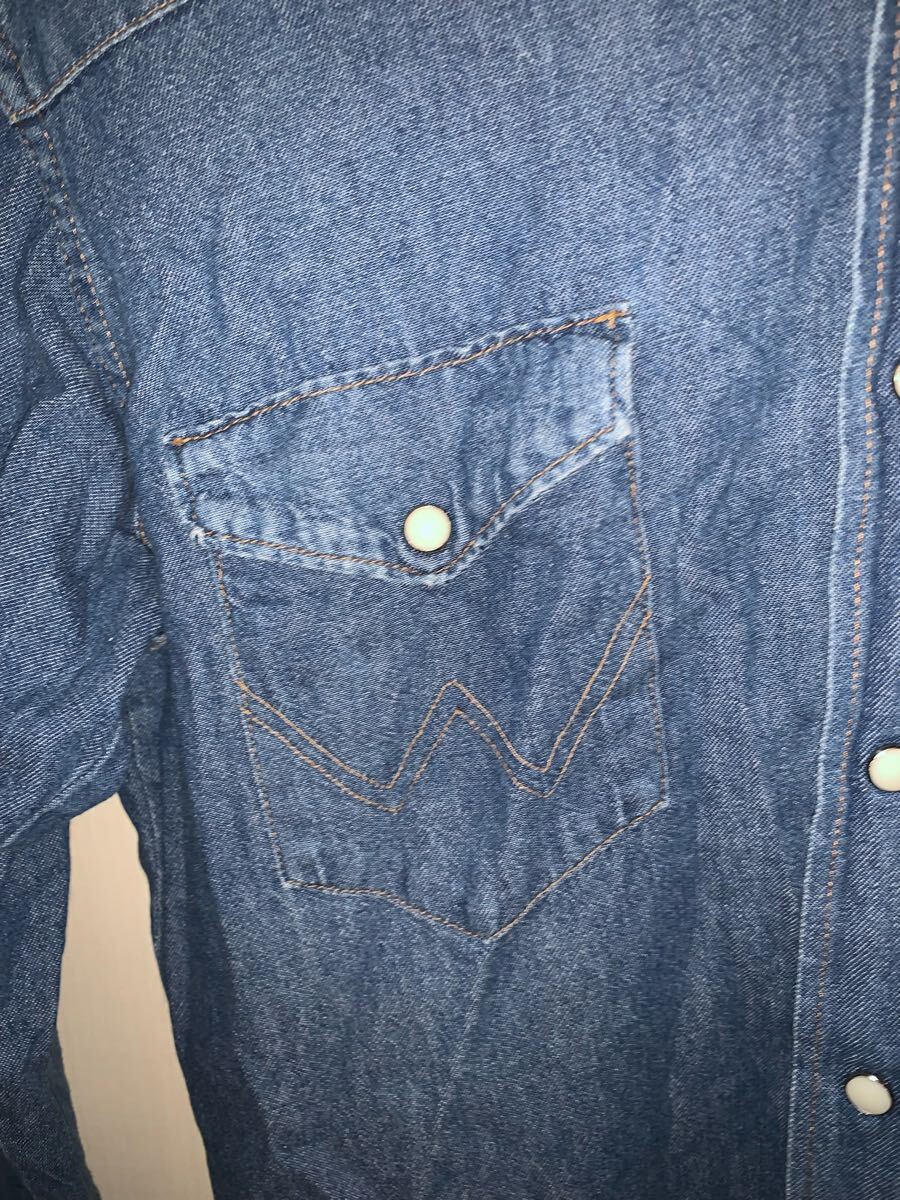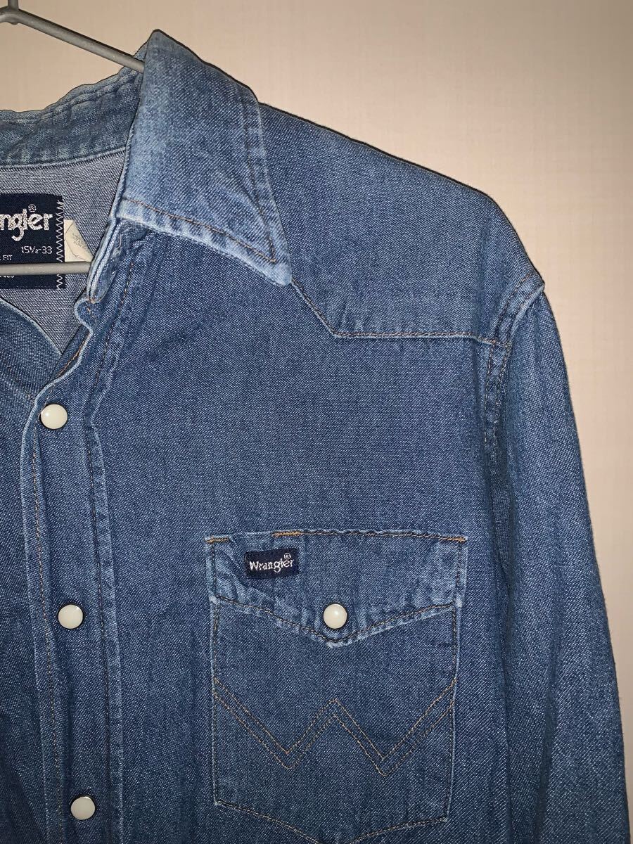wrangler ウエスタンシャツ made in USA 33 Lサイズ相当 長袖シャツ デニム インディゴ シャツ ワークシャツ 美品 希少 ラングラー