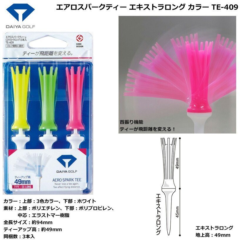 ダイヤゴルフ エアロスパークティー エキストラロング カラー TE-409[30624]