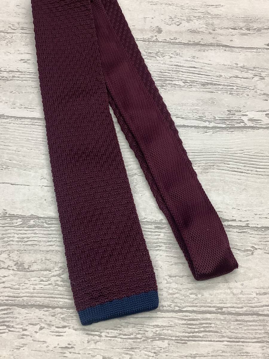 新作 新品未使用 可愛いワンポイントライン入り ニットタイ エンジ 花紺 大剣6cm お買い得サービス