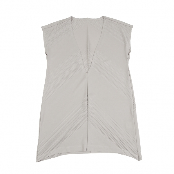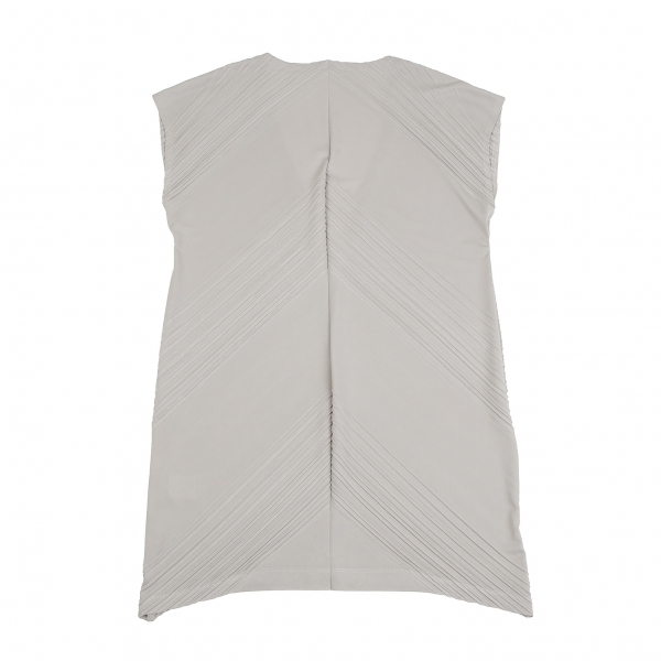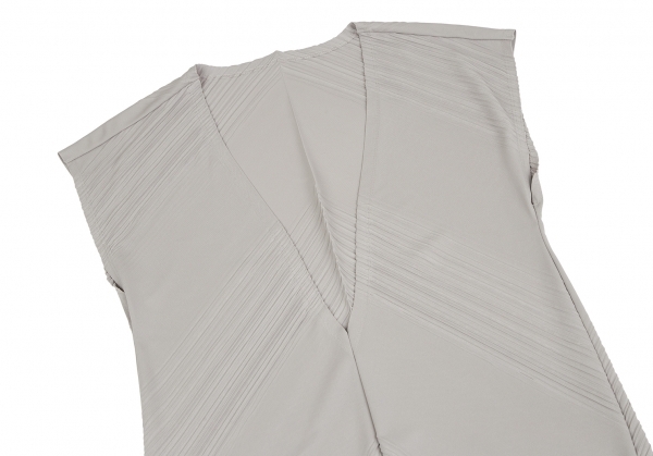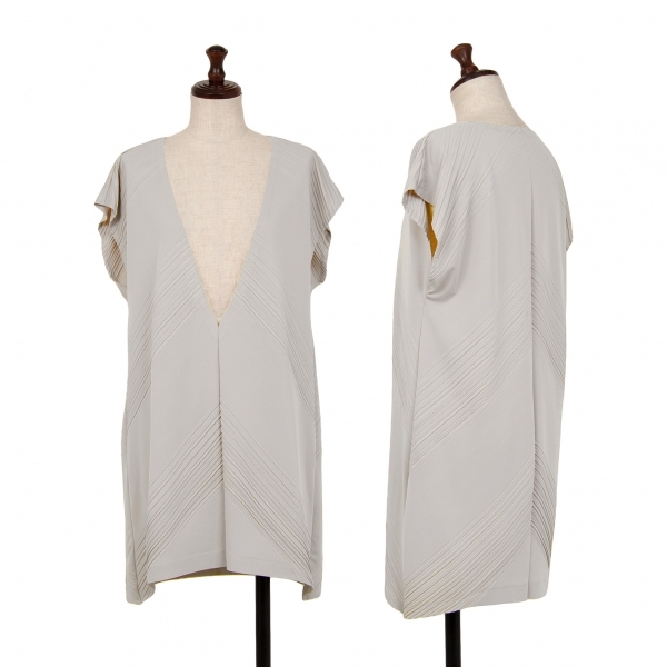 イッセイミヤケISSEY MIYAKE 斜行プリーツデザインVネックチュニック グレージュ2 |