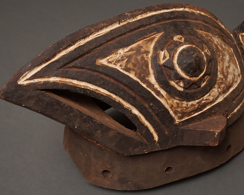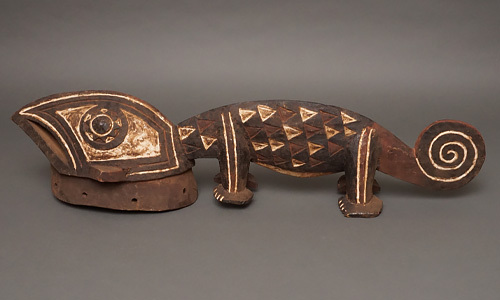 ブルキナファソのグルンシ族によるカメレオンの仮面です。