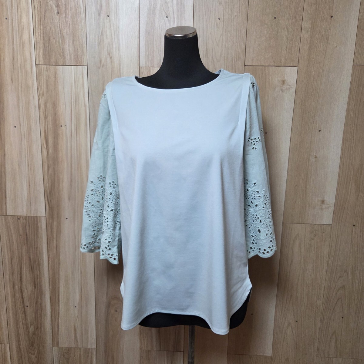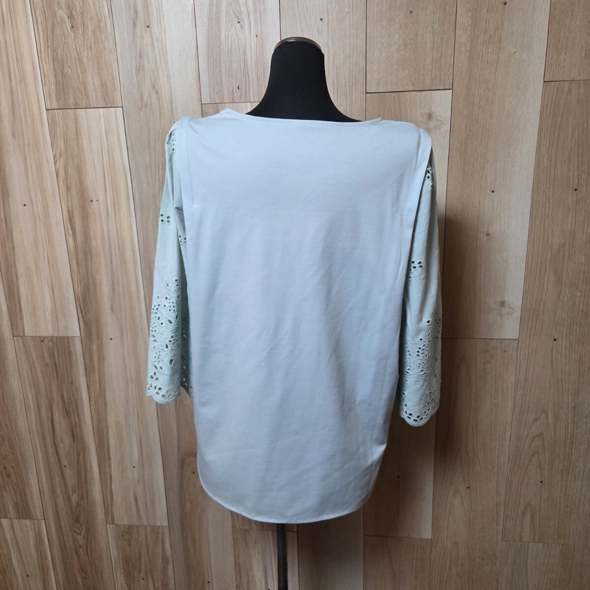 超美品 LUCUORE ルクオーレ★接触冷感モクロディ スカラップレーススリーブ プルオーバー ミントグリーン ショップチャンネル
