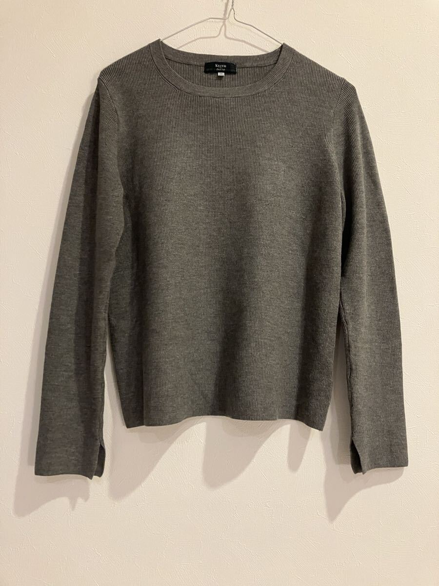 目が細かくてシンプルな畦編みのクルーネックニットプルオーバー。