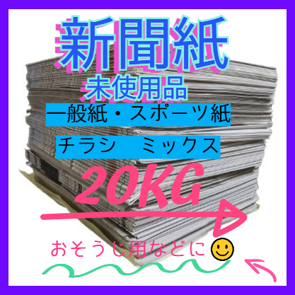 ■未使用の新聞紙20kg 一般紙・スポーツ紙・チラシ 選別無しのミックス品となります。無選別の為、お安くなっております。ペットのトイレ用や掃除用に大量に使いたい方にはコスパの良いこちらがオススメ! 無選別品につき、配合比率については箱詰めした物によりそれぞれ異なります。 基本的に一般紙やスポーツ紙等の新聞紙が主体の商品となりますが、折り込みチラシ等の入り具合についてはその時により異なりますのでご理解願います。