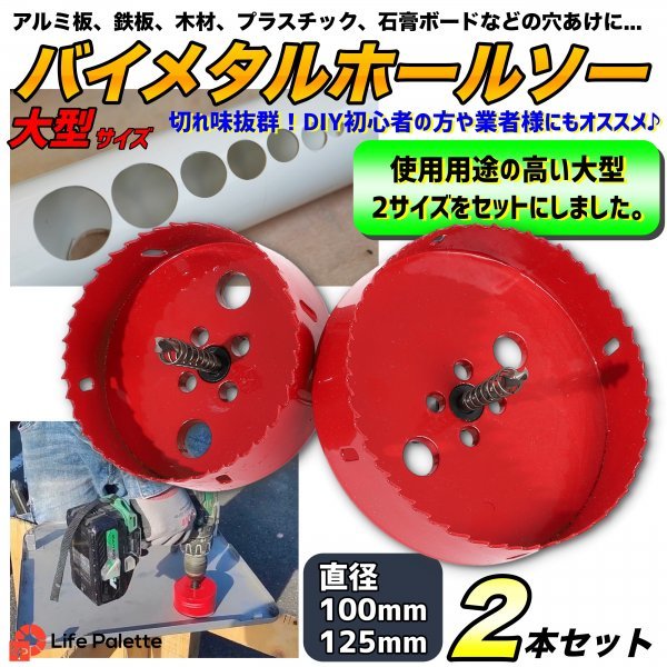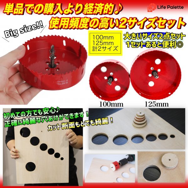 大型 大きいサイズ 2個 セット 超硬 ホールソー ホルソー ドリル 穴あけ インパクトドライバー 電動ドリル ボール盤 対応 木工 100mm 125mm | |||