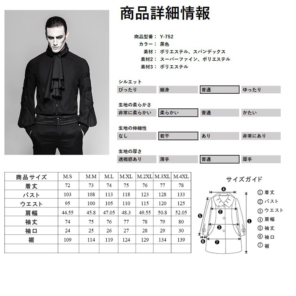Y-752-S ゴシックファッション ジャボ付 ボタンドカフス ブラウス ゴスロリワールド ゴシック パンク ロック ビジュアル系 V系