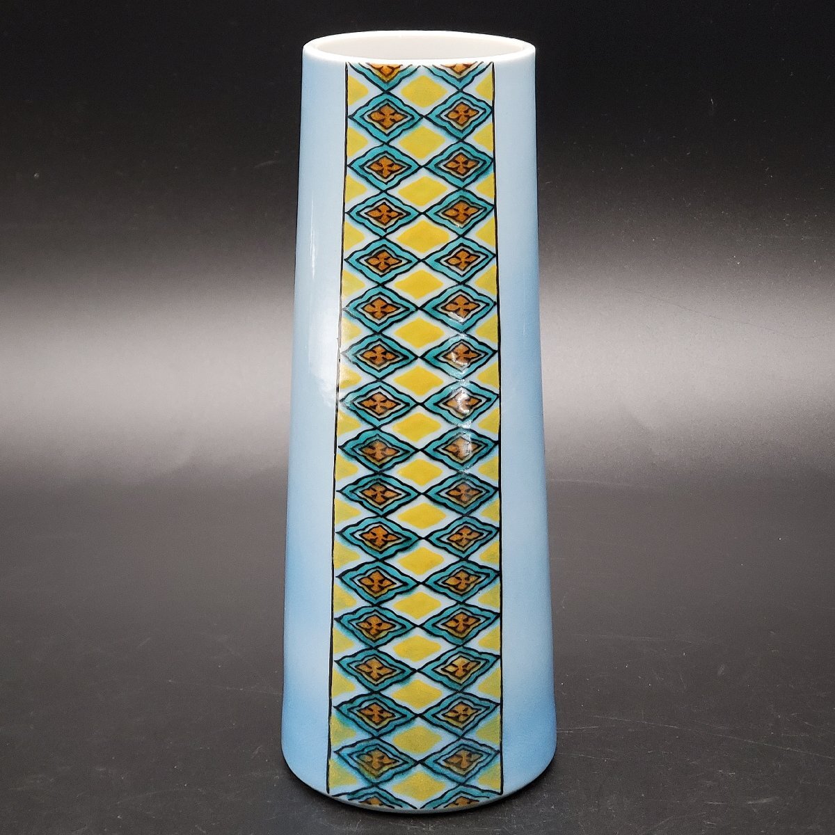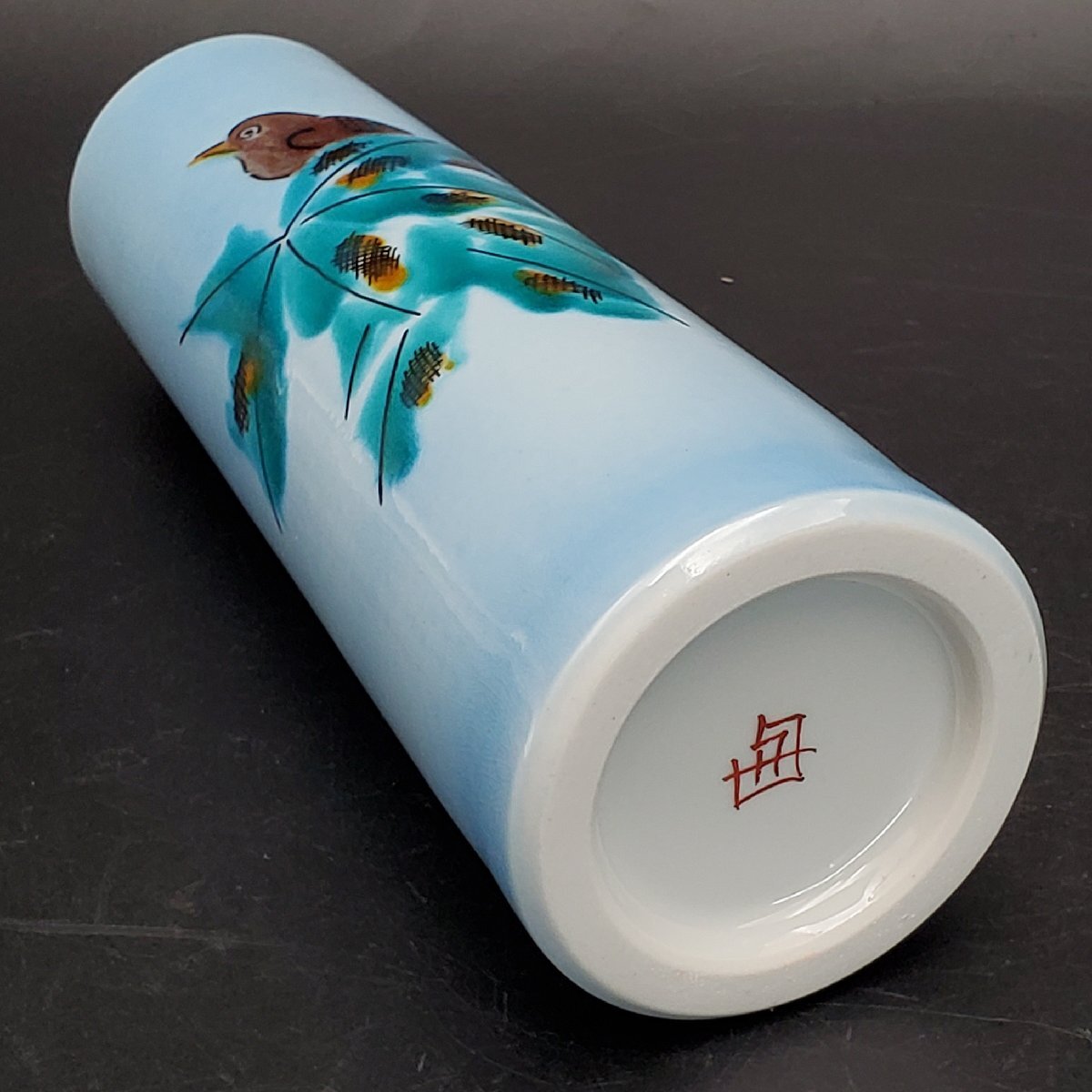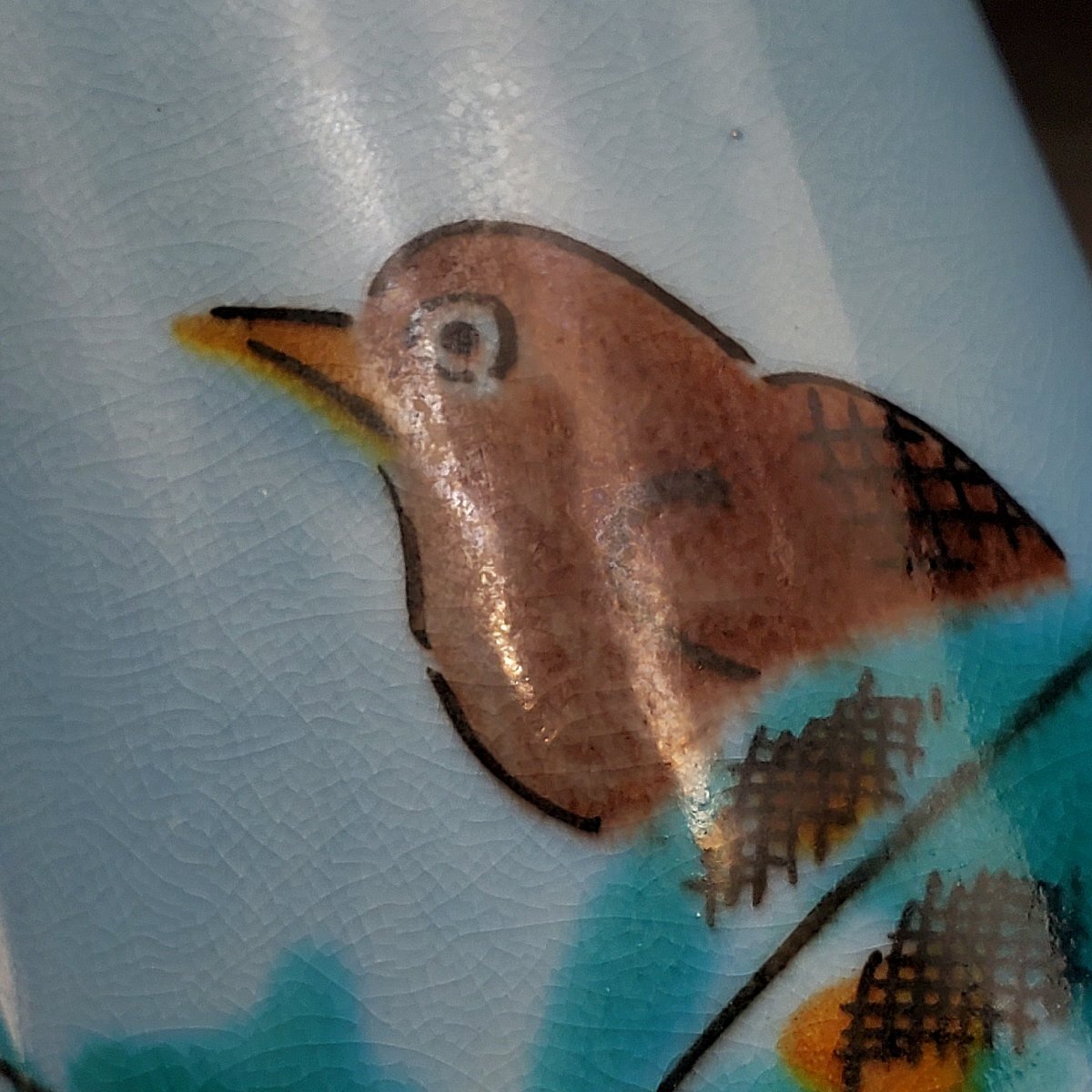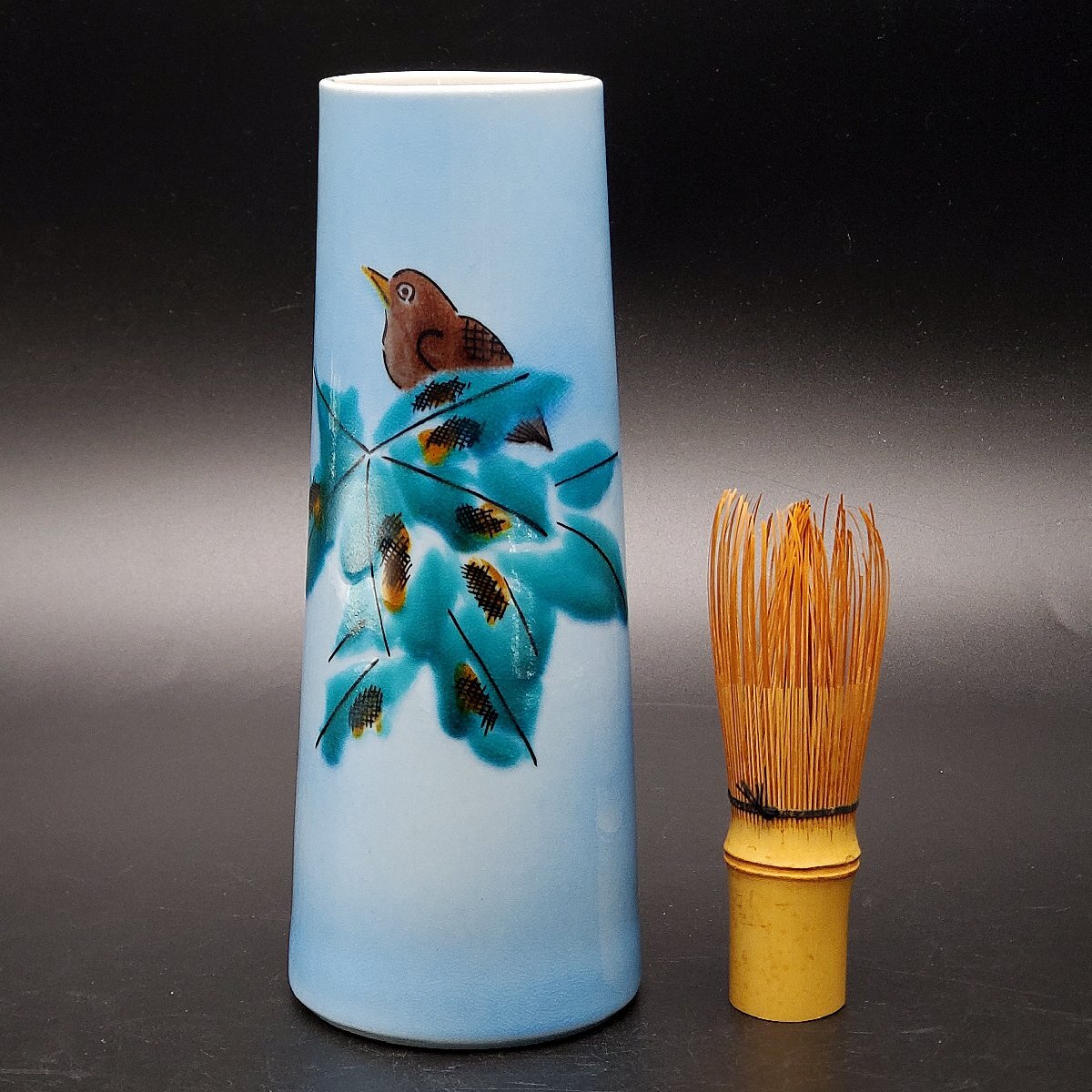 【宝蔵】九谷焼 浅蔵与成 色絵鳥図花生 花瓶 花器 高さ約20㎝ 共箱