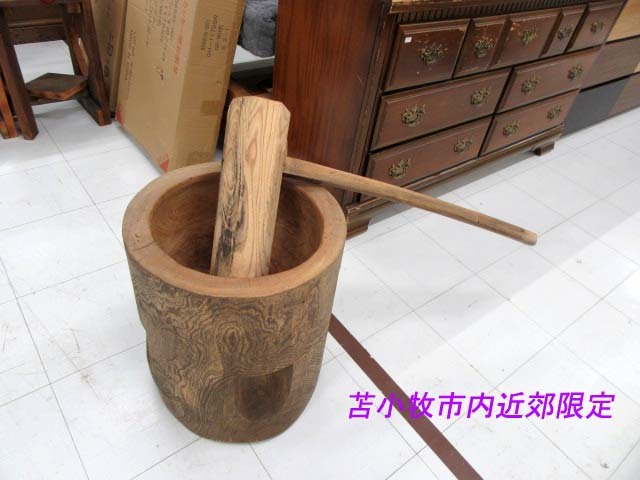 苫小牧市内近郊限定 現状品 古民具 木製 臼 杵 セット 餅つき 年中行事 イベント レトロ オブジェ 古道具 木質不明 うす きね 苫小牧西店