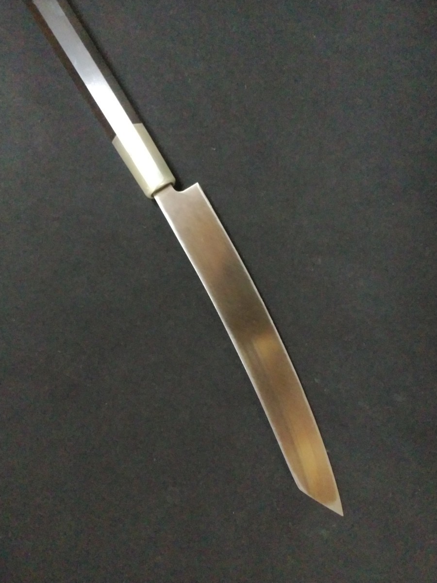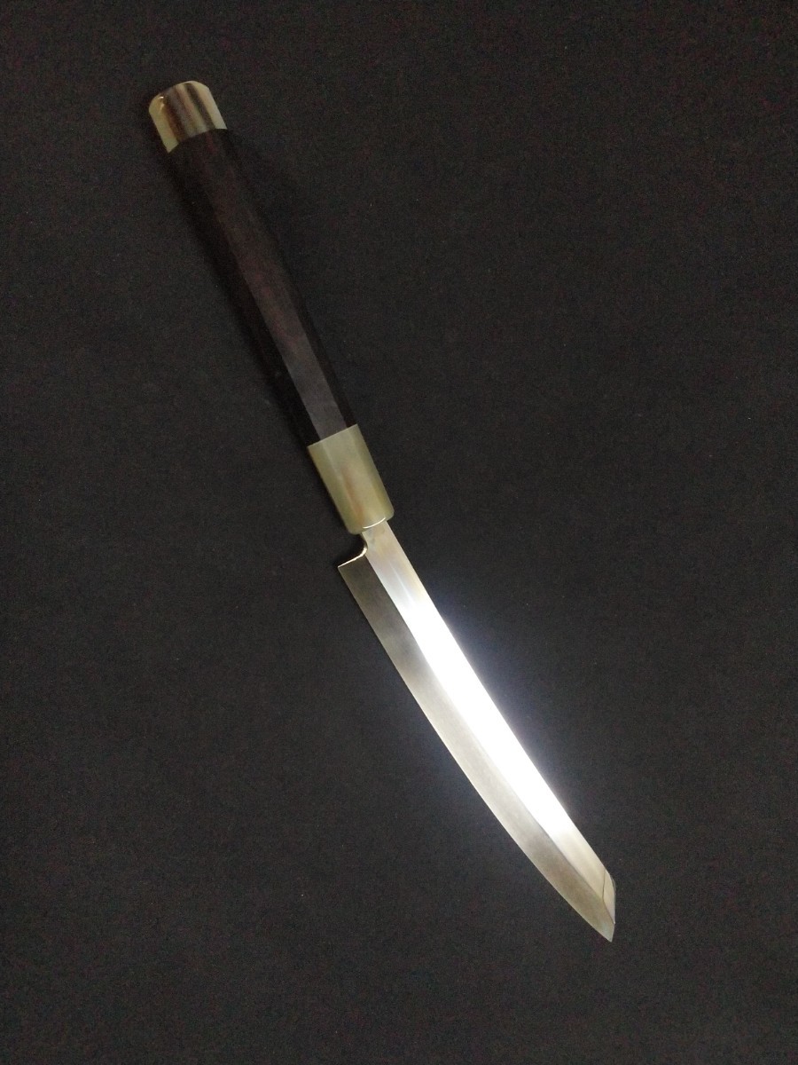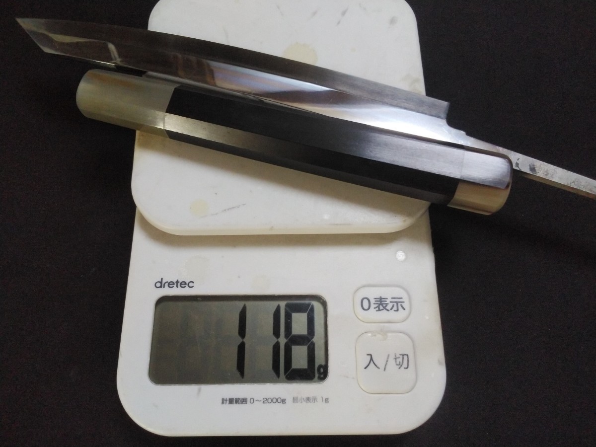 特注の細い柄で包丁とのバランスが非常に格好が良いです。