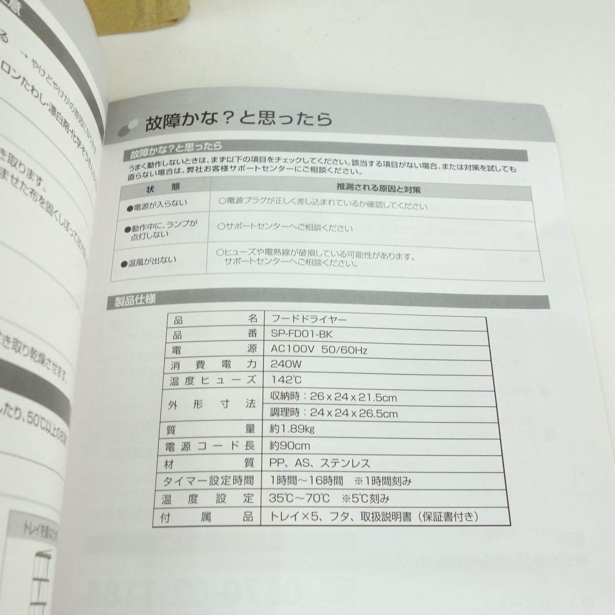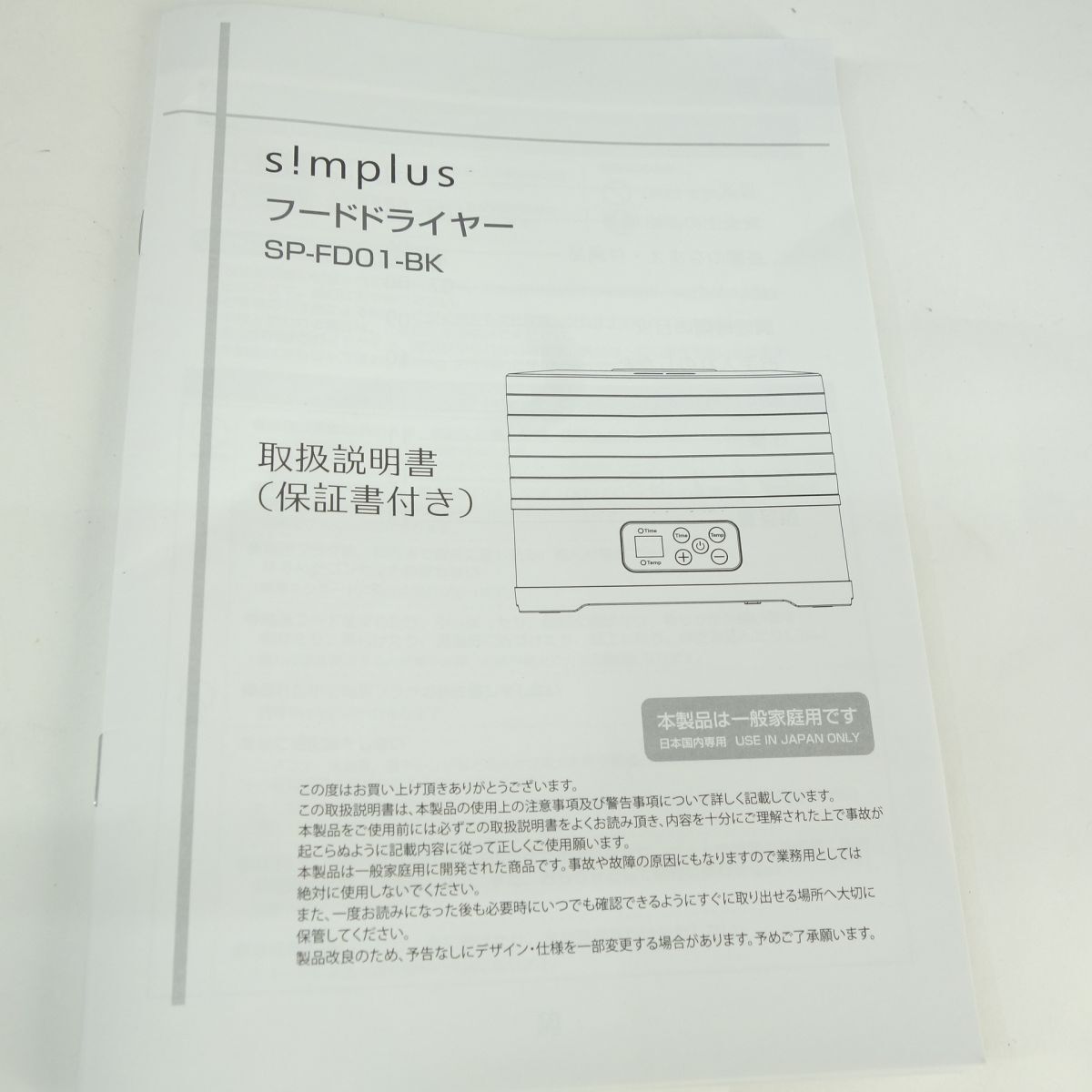 106 【未使用】simplus シンプラス SP-FD01-BK フードドライヤー ブラック □内容品:完品 □JAN:4589668479411 □保証:無し ※当方での発行や記入は致しかねます。 □状態 ・使用された形跡がない為、未使用と判断しております。 ・外箱には保管に伴うスレ、ヨゴレ、ヘコミ、破れ等のダメージ、 側面には伝票跡が見受けられます。 ※保管による初期傷・汚れなどある場合が御座います。 未使用品ではありますが、二次流通品の新古品になります為、 完品をお求めの方はご購入をご遠慮くださいますようお願い致します。 |