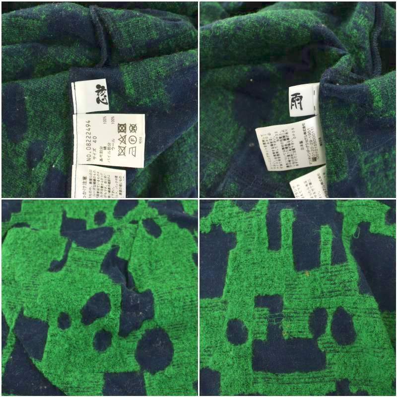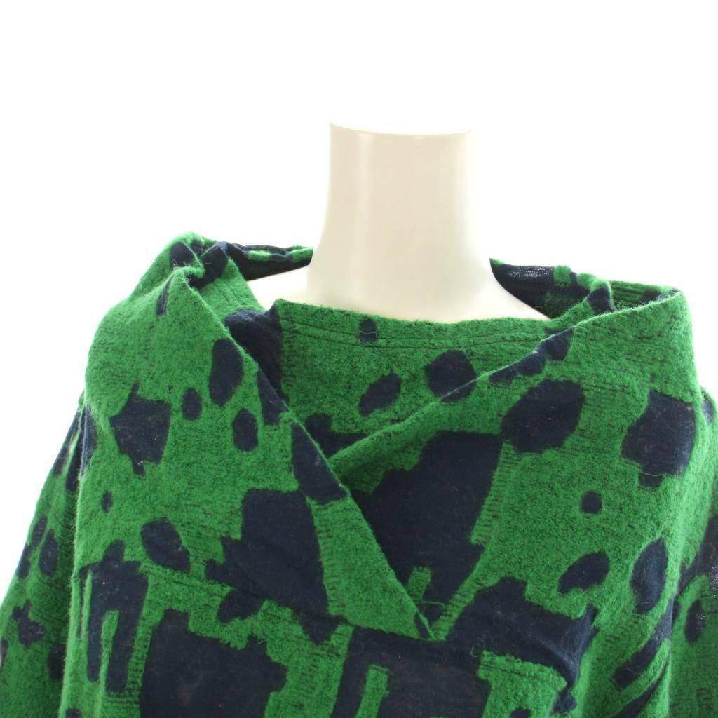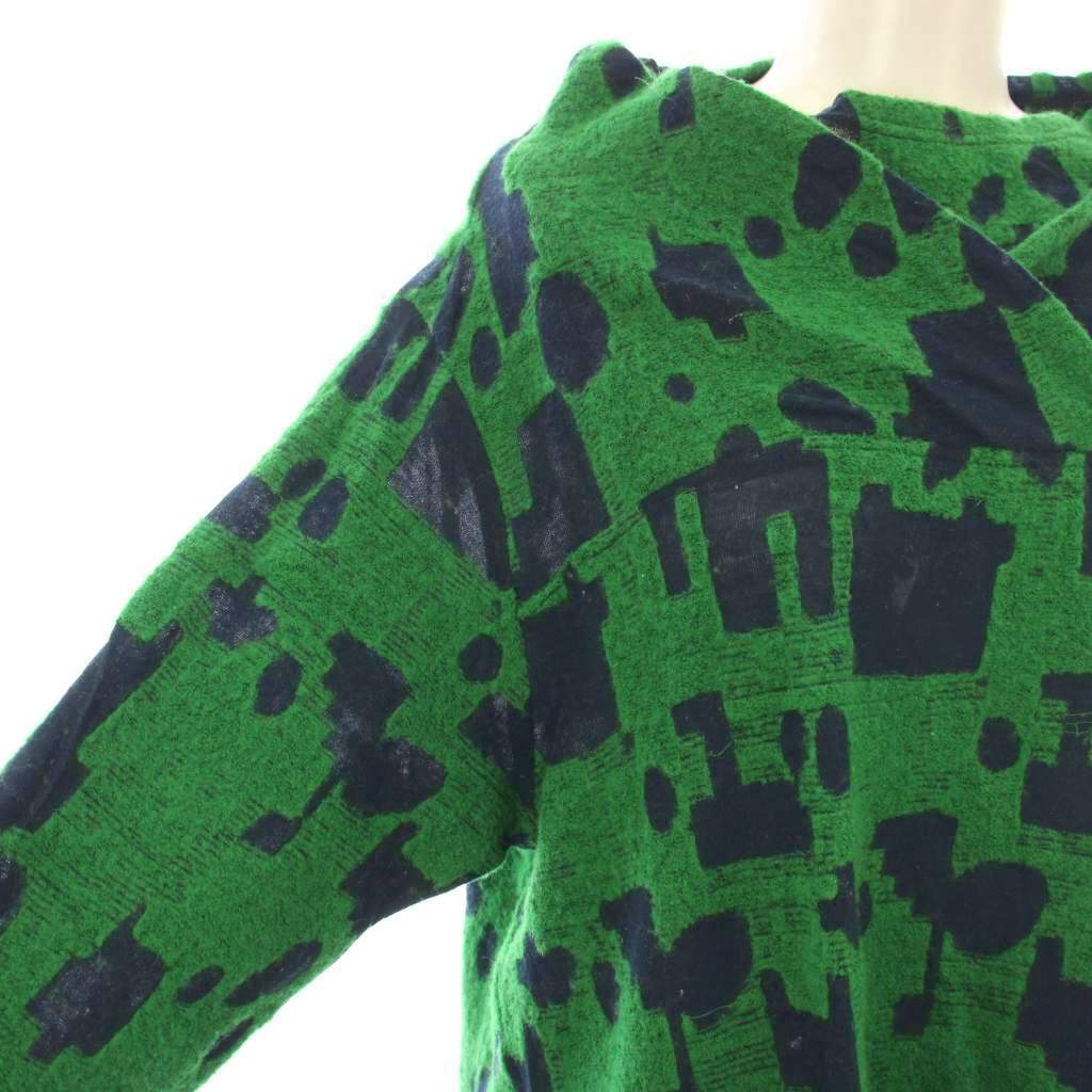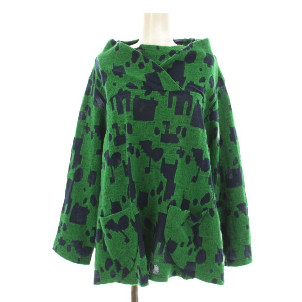 ジウ 慈雨 ニット セーター 長袖 ボトルネック 総柄 ウール 40 緑 グリーン 紺 ネイビー 08222494 /KU レディース