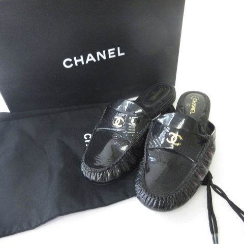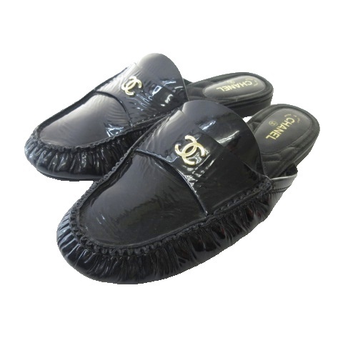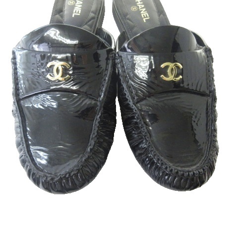 シャネル CHANEL パテント サンダル ミュール ココマーク ブラック 黒 36C 23cm レディース